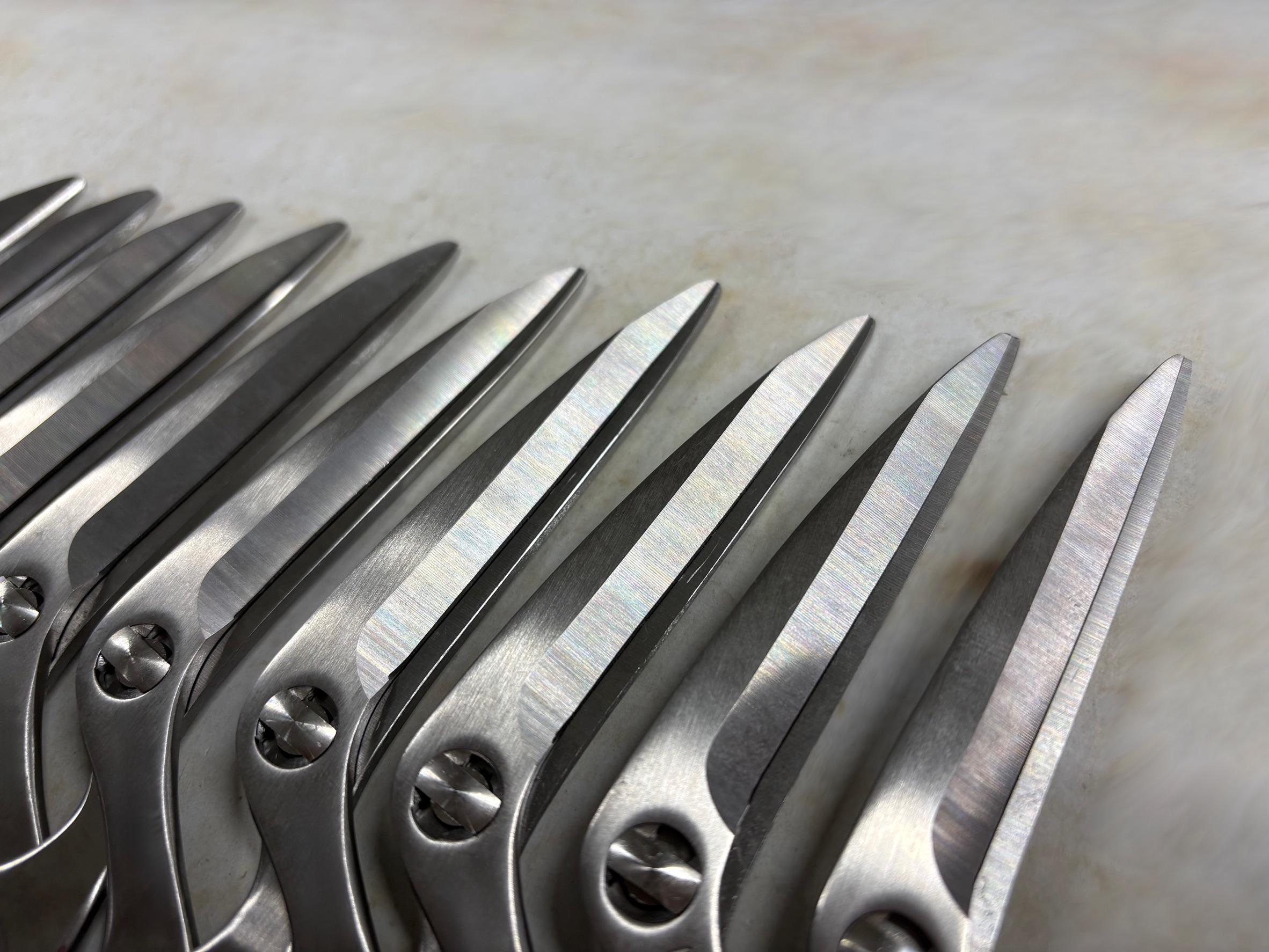 月間14万丁の製造実績があり、自社が製造したハサミは世界中で使われています。また、小ロットからハサミ製造のOEMを受けており、極薄刃や特殊形状の製作実績もあります。