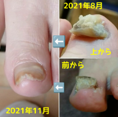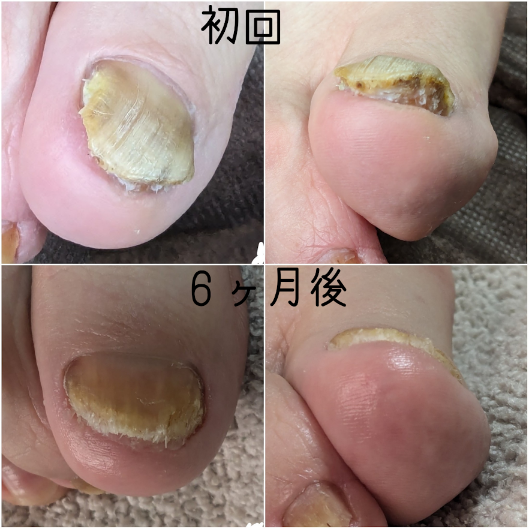 爪が厚くなり靴をはいたとき痛みがあるのがお悩みでした。初回ケアで痛みは解消され、治療との同時進行で改善しています。