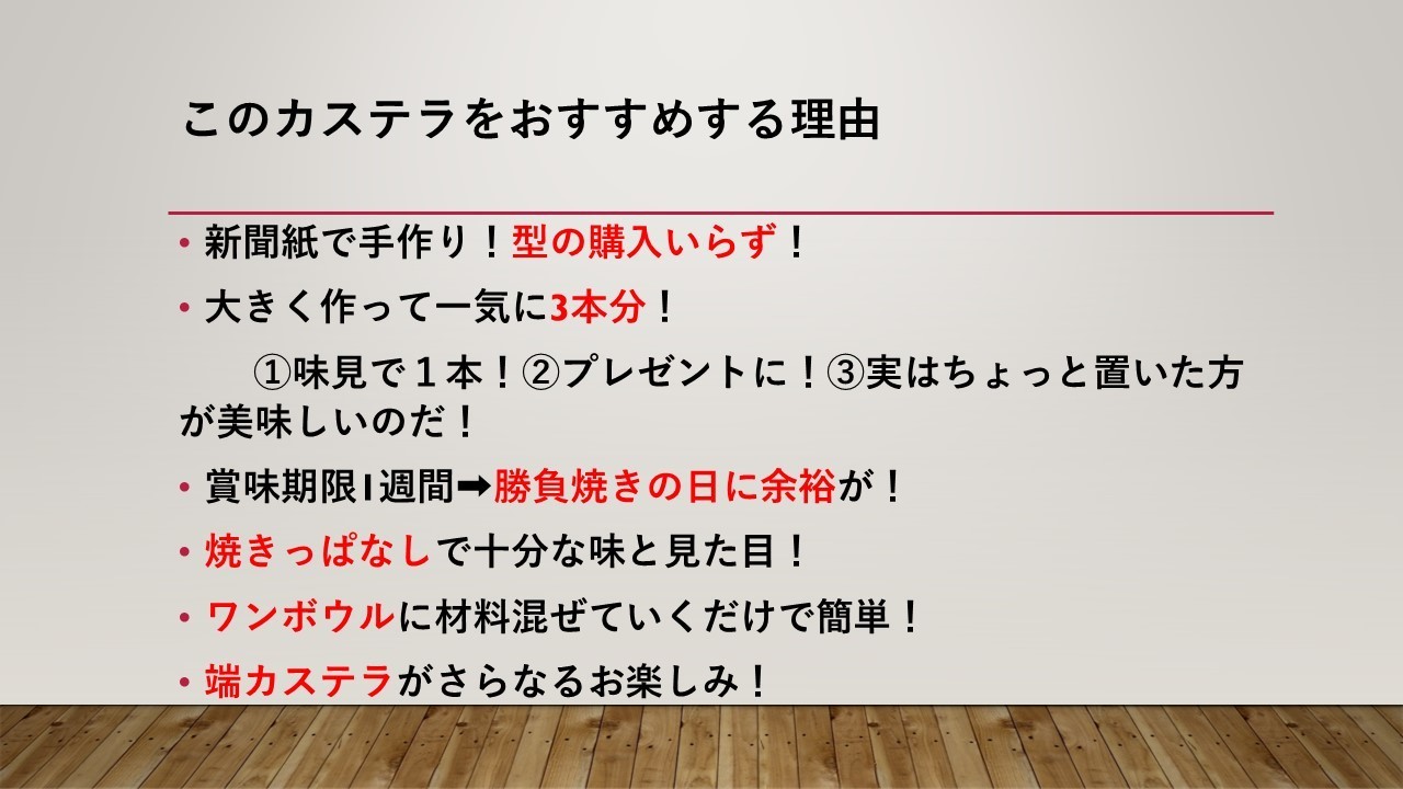 「カステラって手作りできるの?」と驚かれてインパクト大!