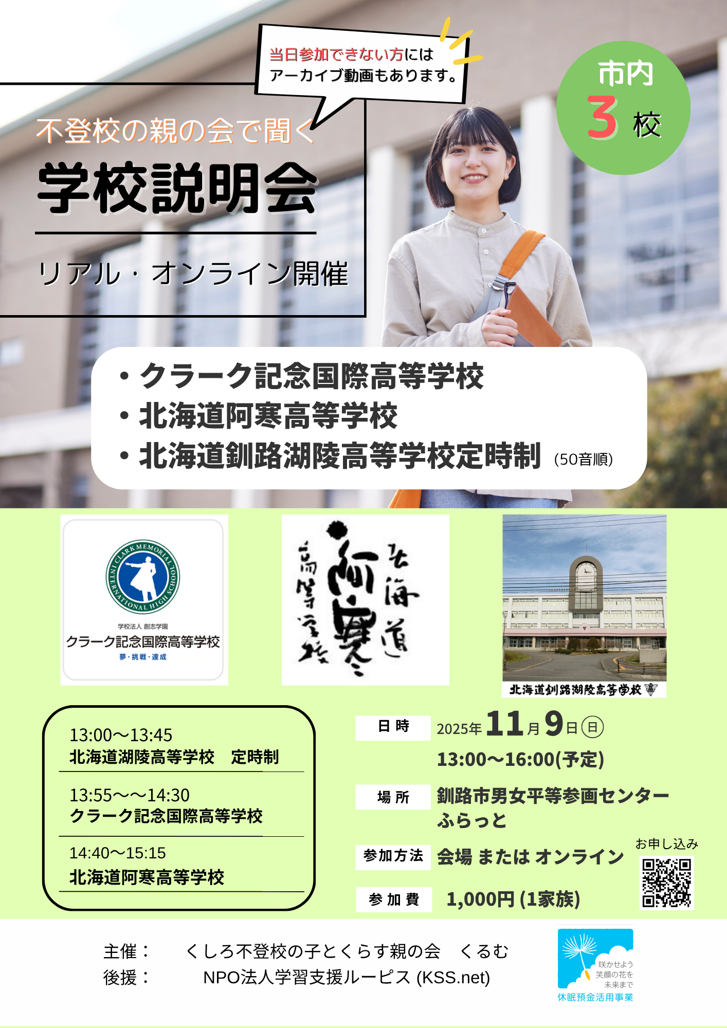 登校日数が少ない子への、釧路市内3校の高校説明会です。