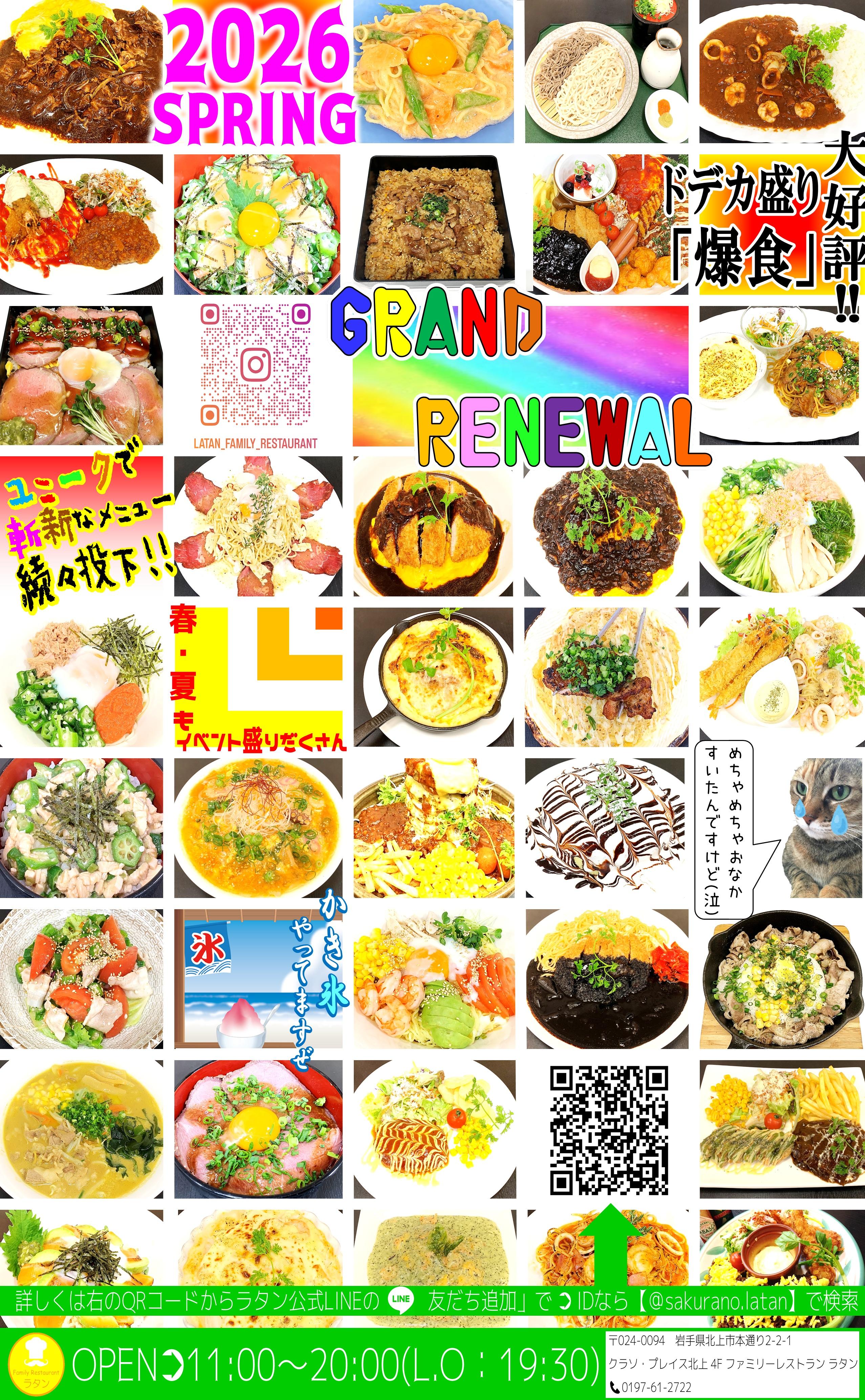 ファミリーレストラン ラタン「GRAND MENU RENEWAL」いたします!