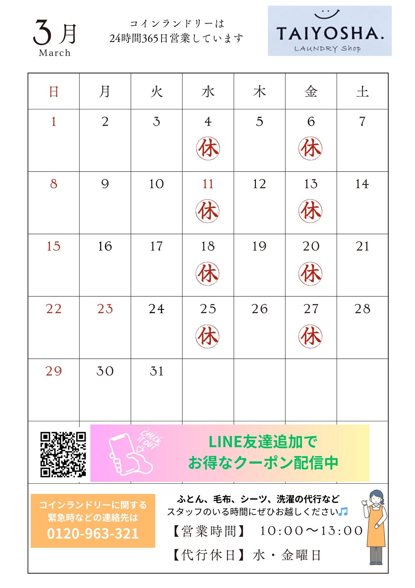 | 営業時間/定休日 | 平日AM 9:00~PM8:00 / 日祝 AM10:00~PM7:00 定休日(水曜日) ※コインランドリー 年中無休 5:00~24:00 クリーニングBOX 年中無休 5:00~24:00 |