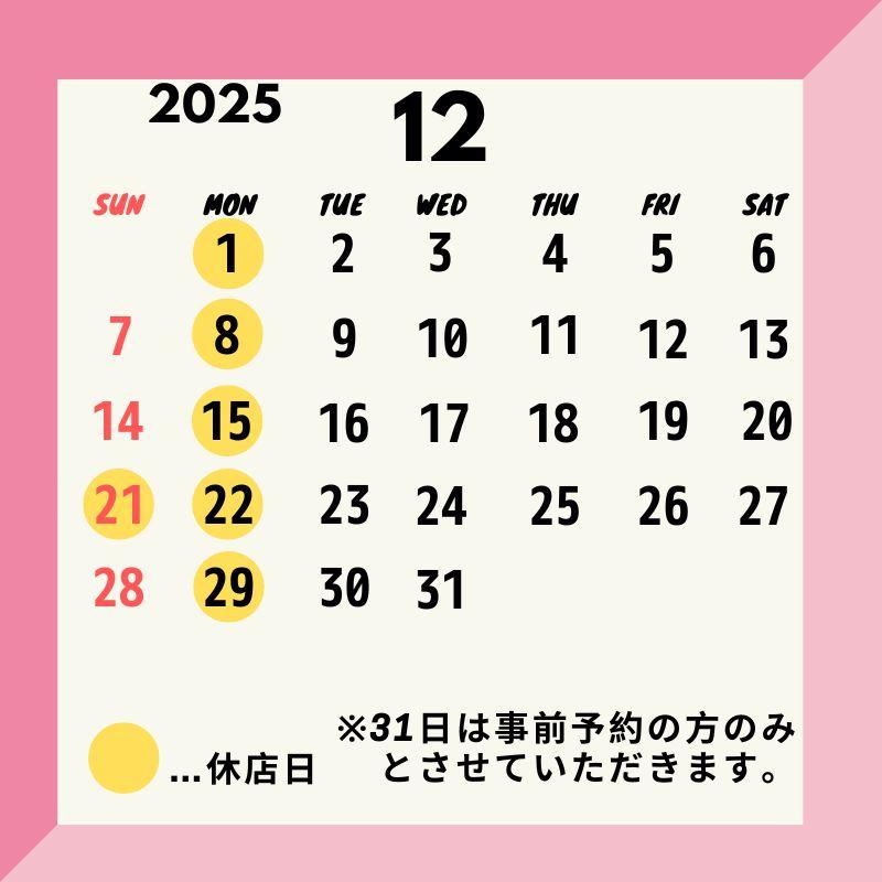 1日(月)、8日(月)、15日(月)、21日(日)、