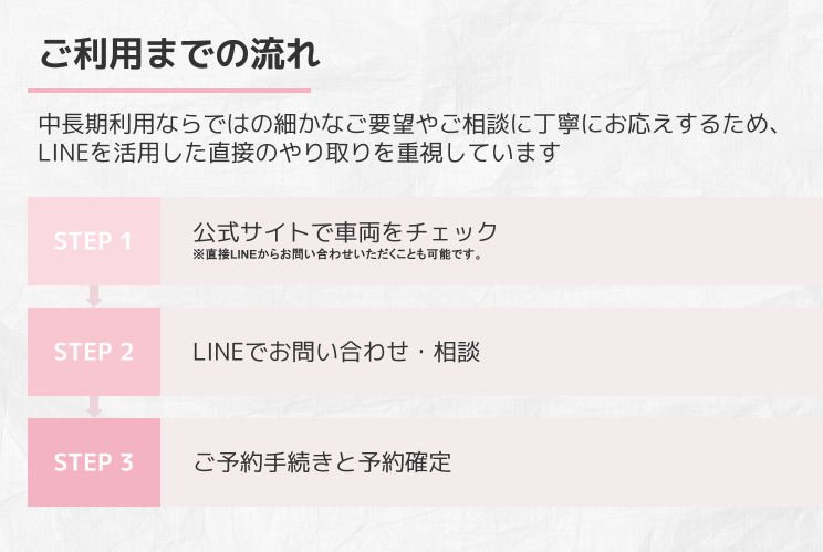 繁忙期だけ営業車が足りなくなるので、毎年レンタルしています!延長も柔軟に対応してもらえるので、必要な時だけ車を借りられて助かっています。