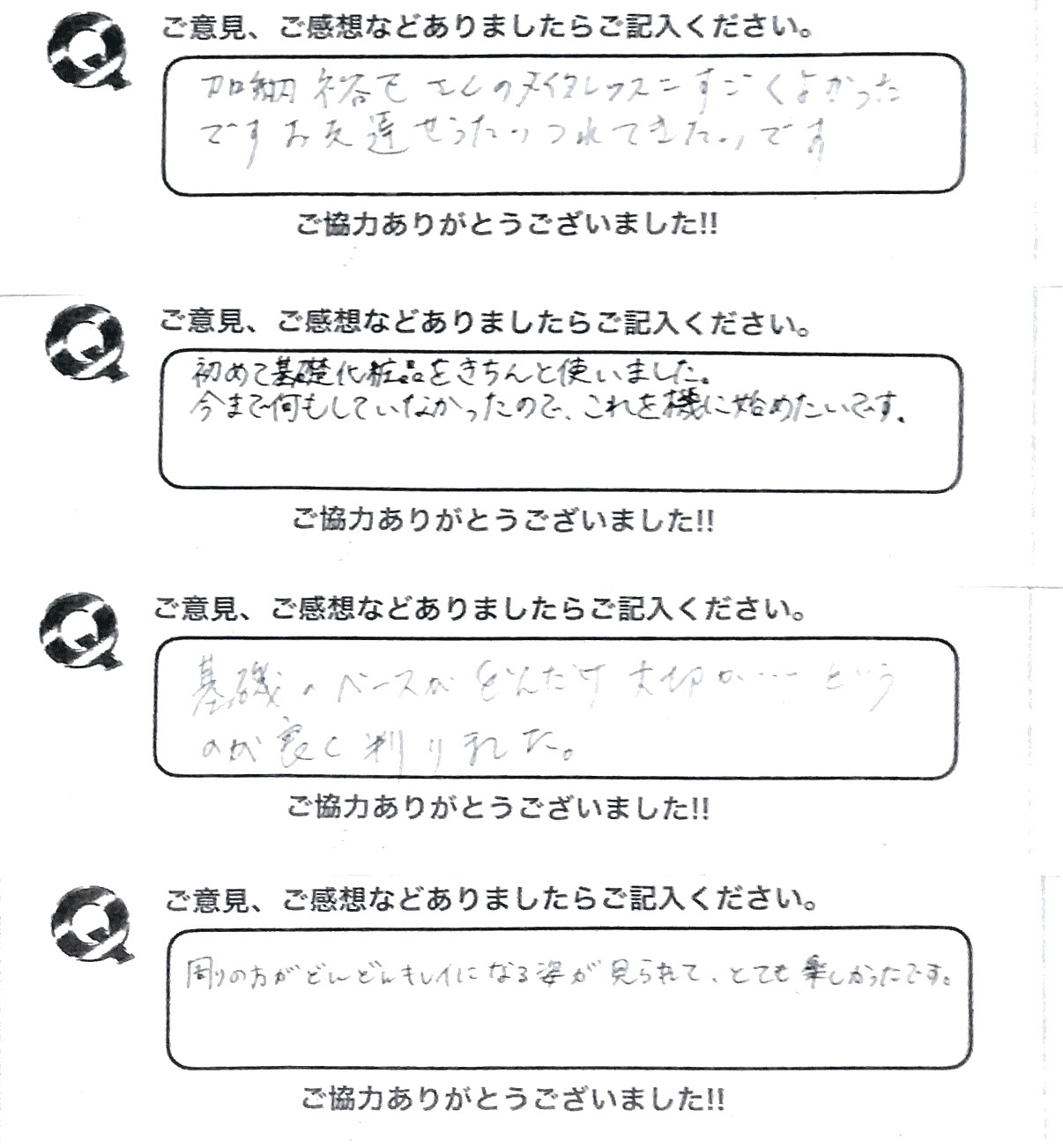 この度は、メイクレッスンへ受講いただき、また素敵な感想もいただき、本当にありがとうございました。