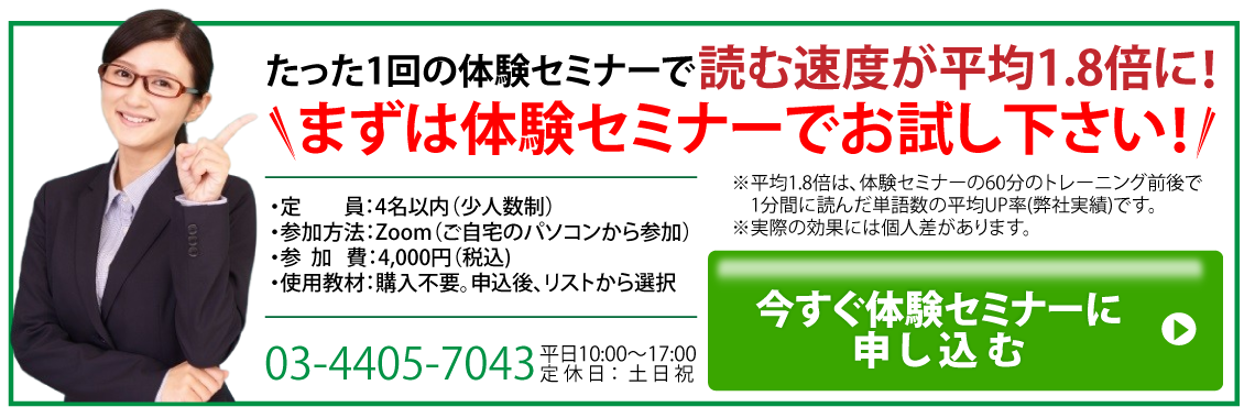 また、速読・速解のメカニズム、速読に留まらない英語速読の有用性、英会話や語彙力を含む効果的な英語力UP法、トレーニング継続の効果や重要性をご理解いただけます。