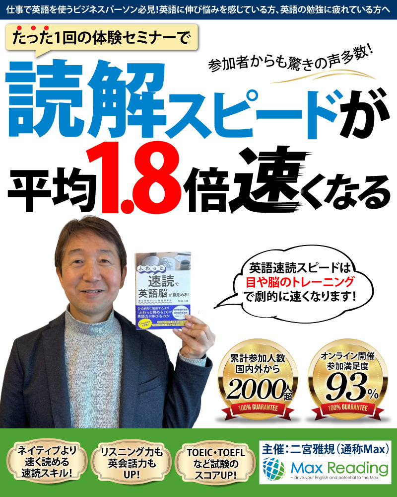 是非、勇気を出して一歩踏み出し、効果を感じられるMax Readingの体験セミナーを受講してみて下さい。