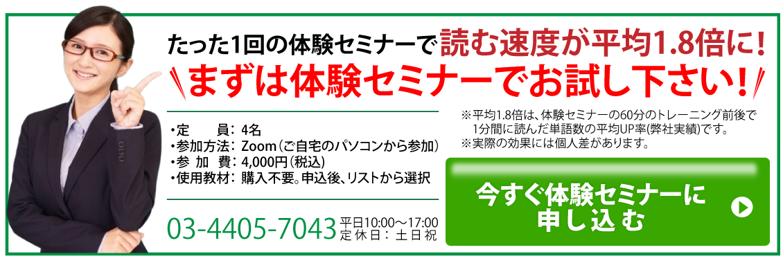 是非、まずは体験セミナーで効果を感じ、両方の言語を「読む」「理解する」こと自体のスピードを高めましょう!