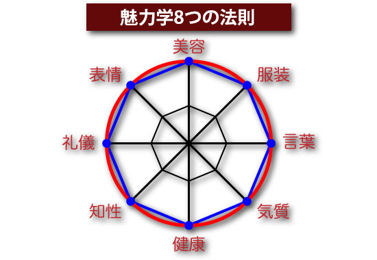 魅力とは個人が生まれもった能力。外面の美が際立つ人、内面の魅力が輝く人。能力の違いは千差万別。魅力が表現される能力を魅力学®8つの法則として、1962年にマダム路子が発表し、産学界において提唱し現在も継続されています。