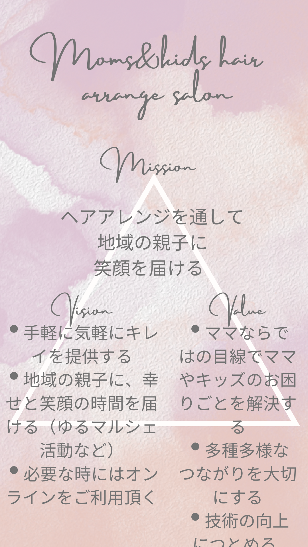 親子で楽しく学べるレッスンから、大人女性向けのセルフヘアアレンジまで、ただのヘアスタイル作りではない、自分をもっと好きになれる体験をお届けします。
