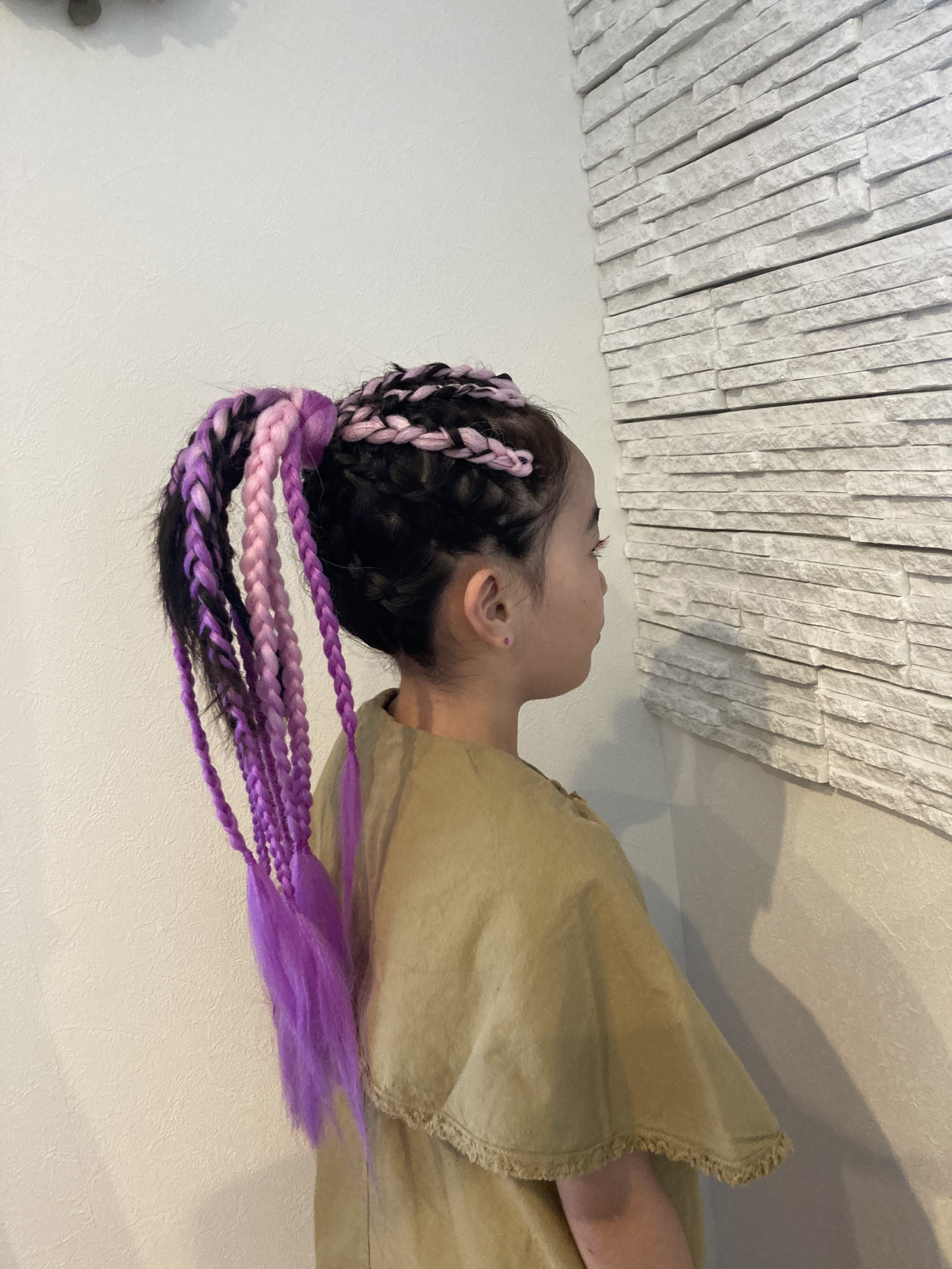 カラーエクステを使ったユニコーンヘアを体験! プリンセス気分になれて、一日中ハッピーに過ごしていました◎ 次はポニーテールのユニコーンにしたい!と言っています♪ |