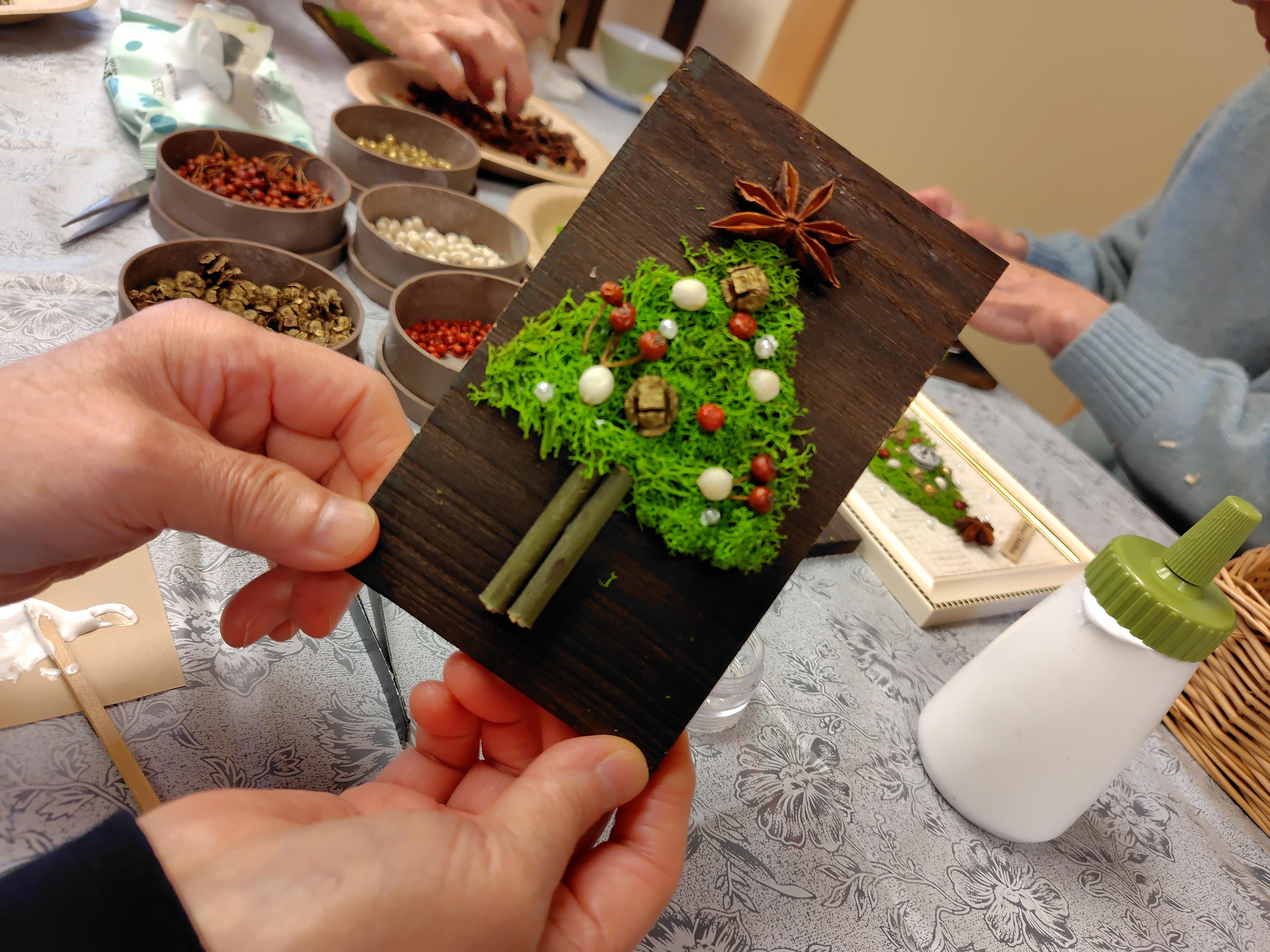 広瀬さんのナチュラルクラフトではクリスマスツリーモチーフの壁飾りを教えていただきました。