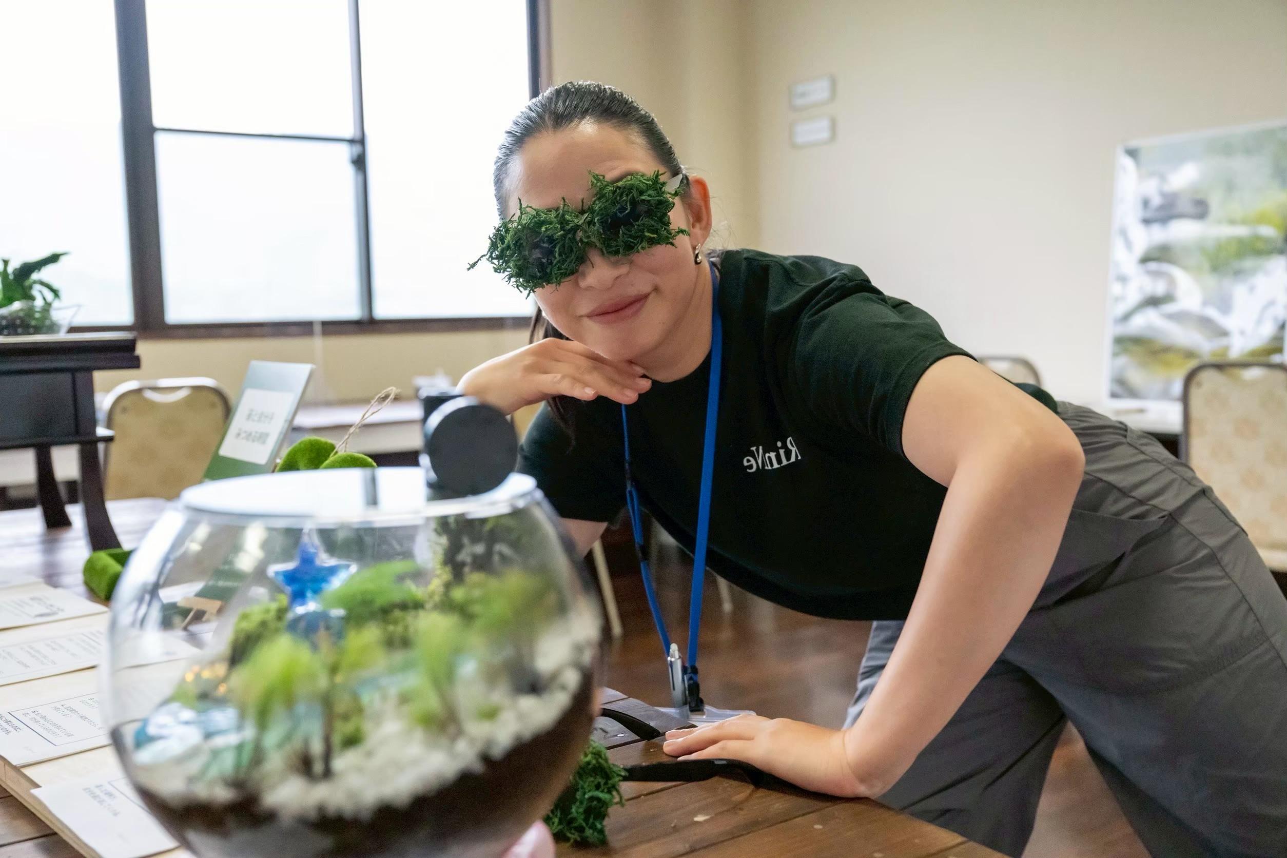自分だけの「コケの森」が出来上がると目を輝かせる。