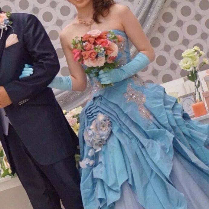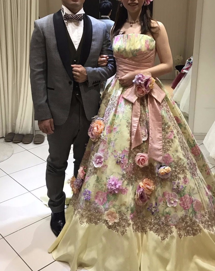 やはり、ご依頼してよかった!特にカラードレスは私では選ばない色でしたが、結婚式に来て下さった片や、後で写真を見た方々が、口を揃えて「カラードレス、素敵!」と、言って下さいました。