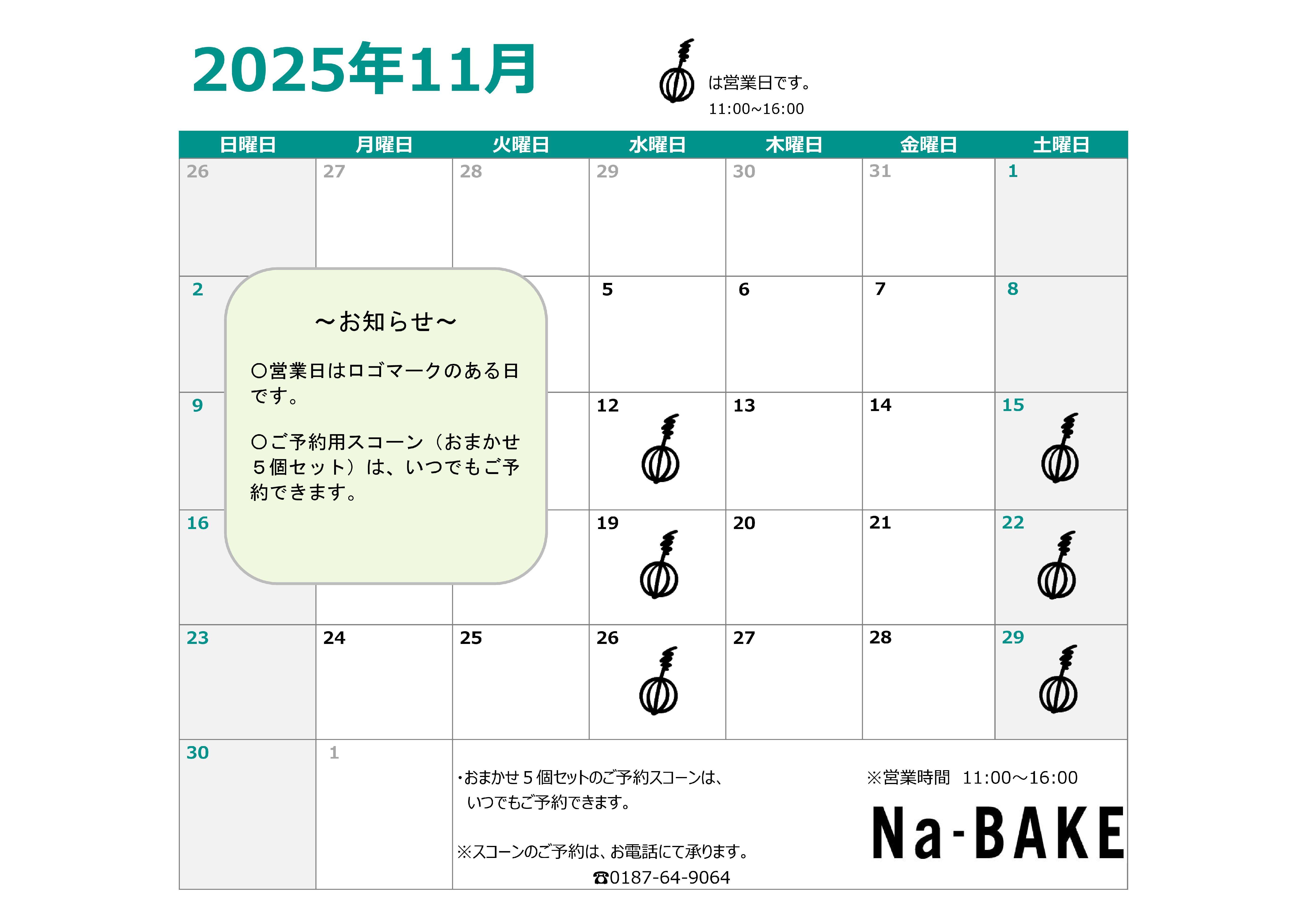 Na-BAKE(ナベイク)は、大仙市にある小さな焼菓子店です。