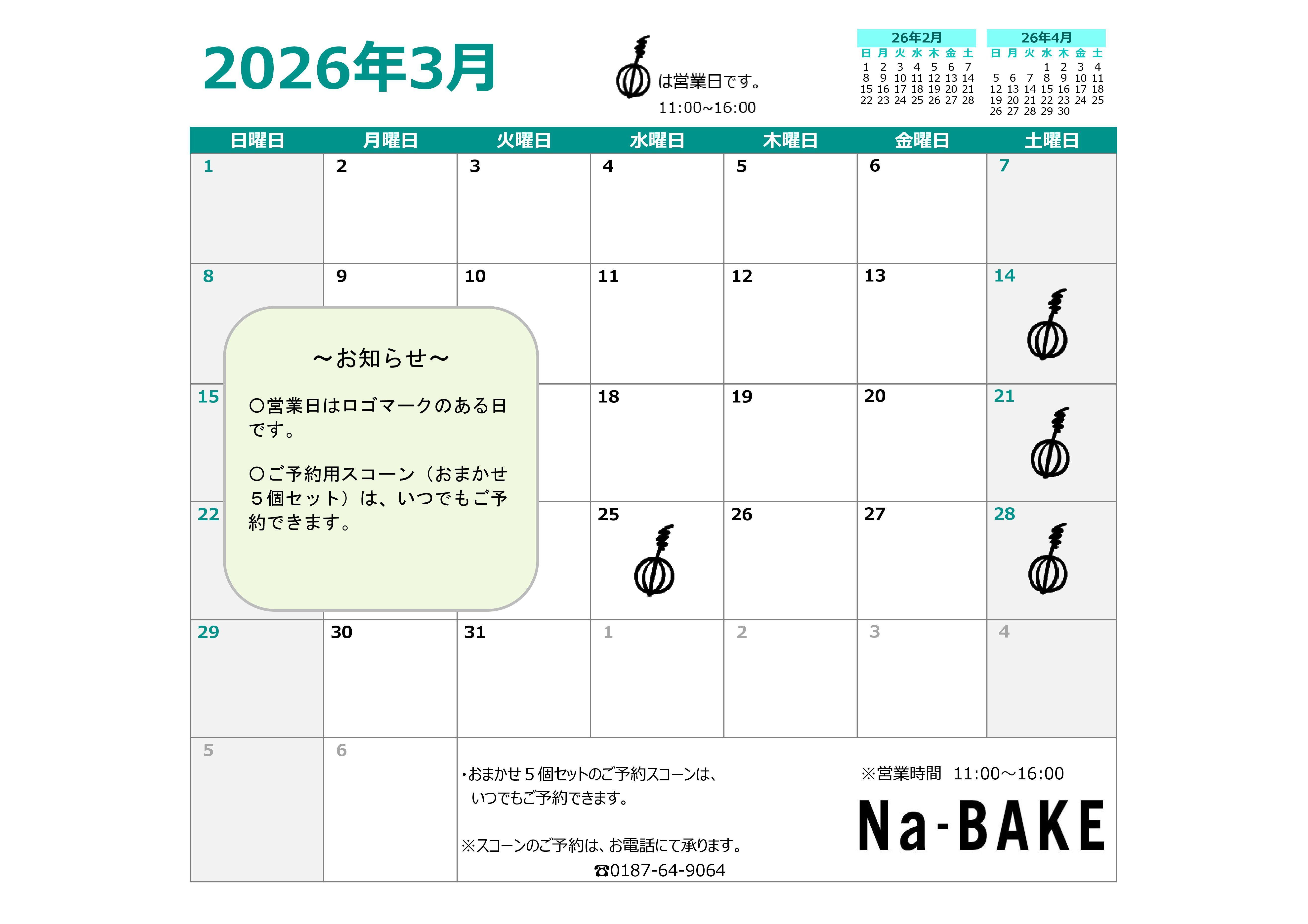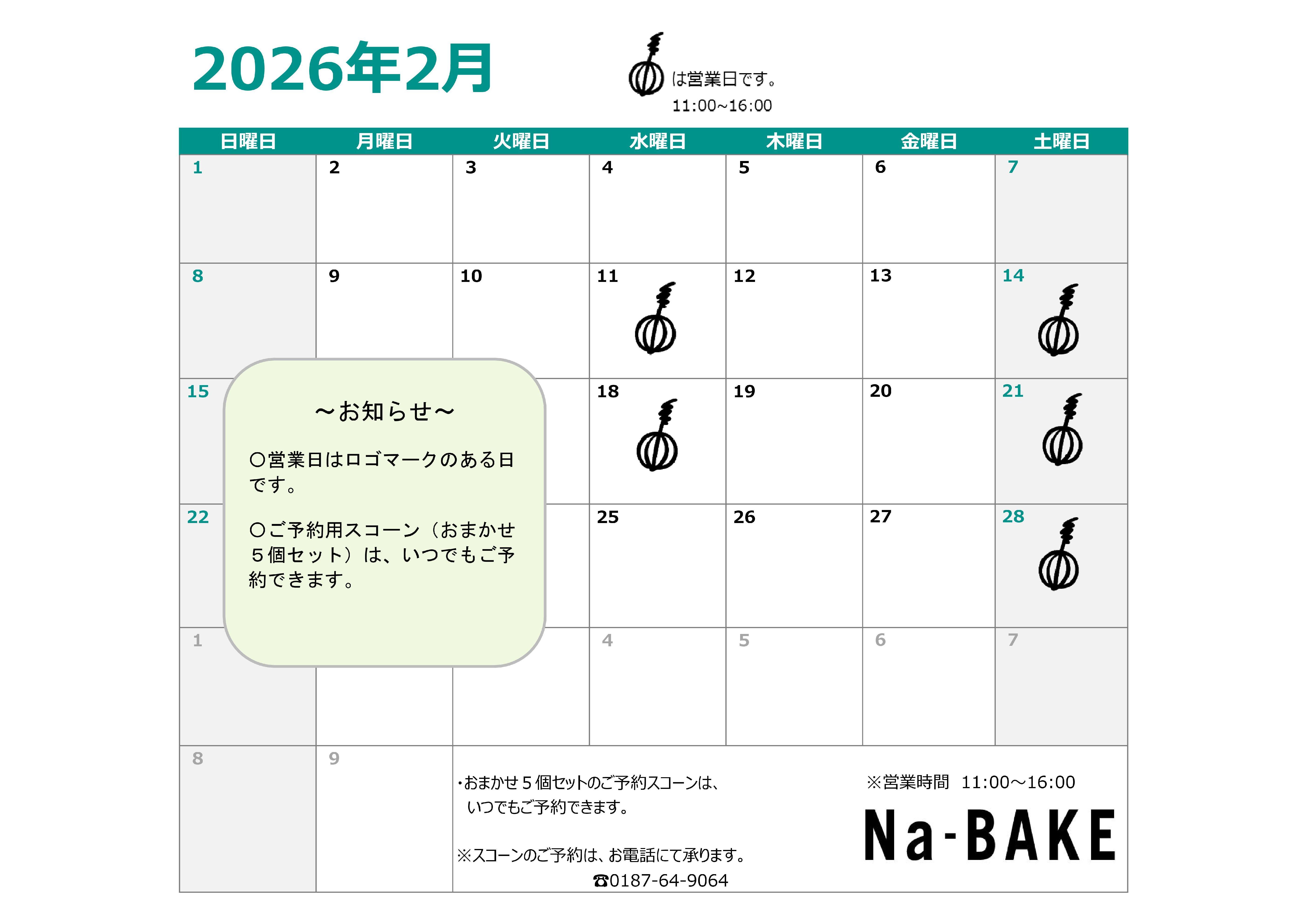 スコーンは、お電話にて事前予約ができます。