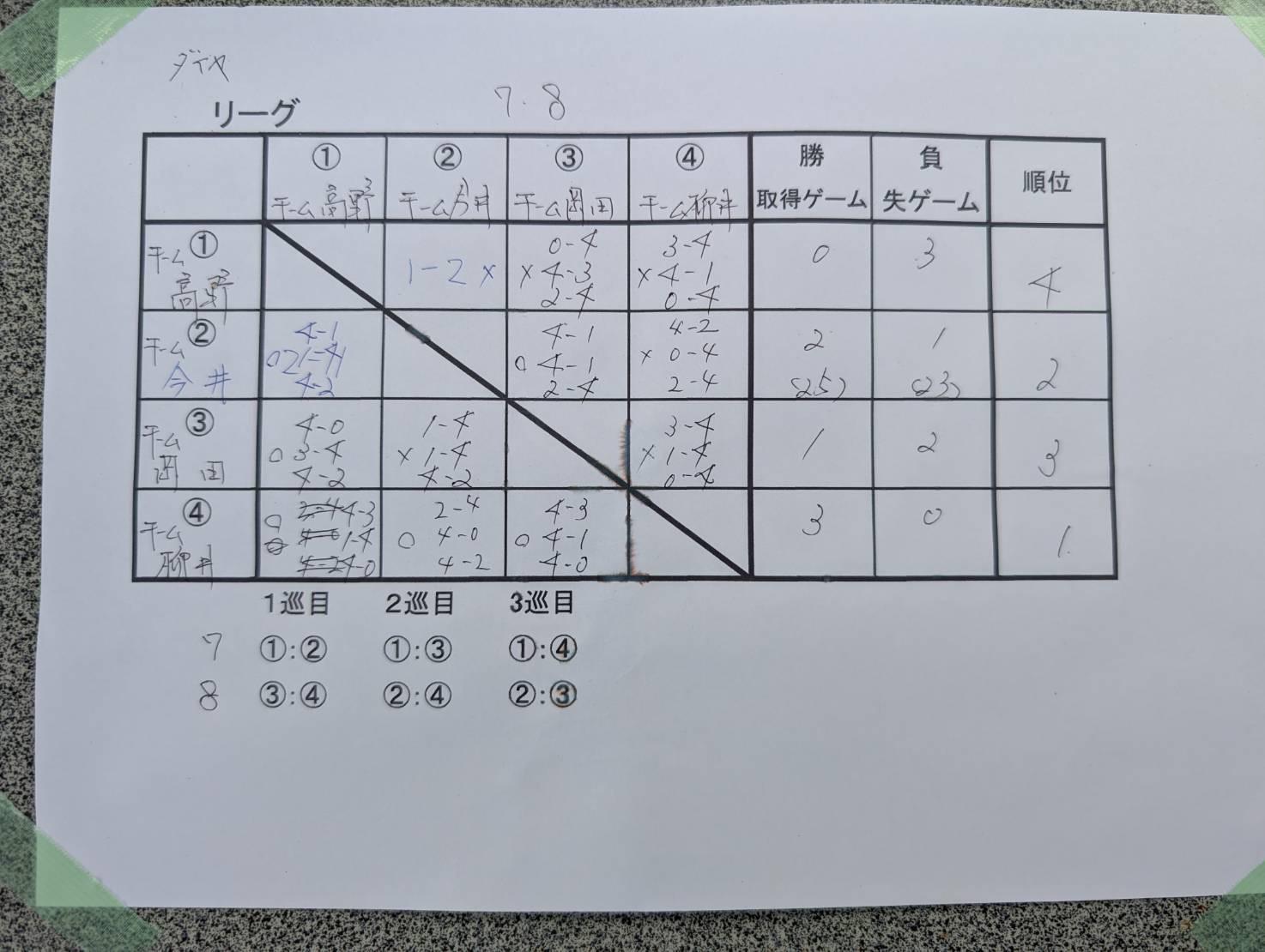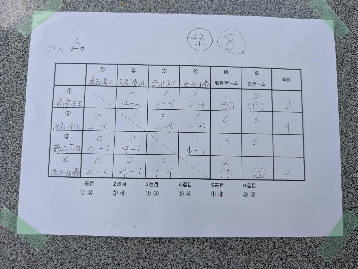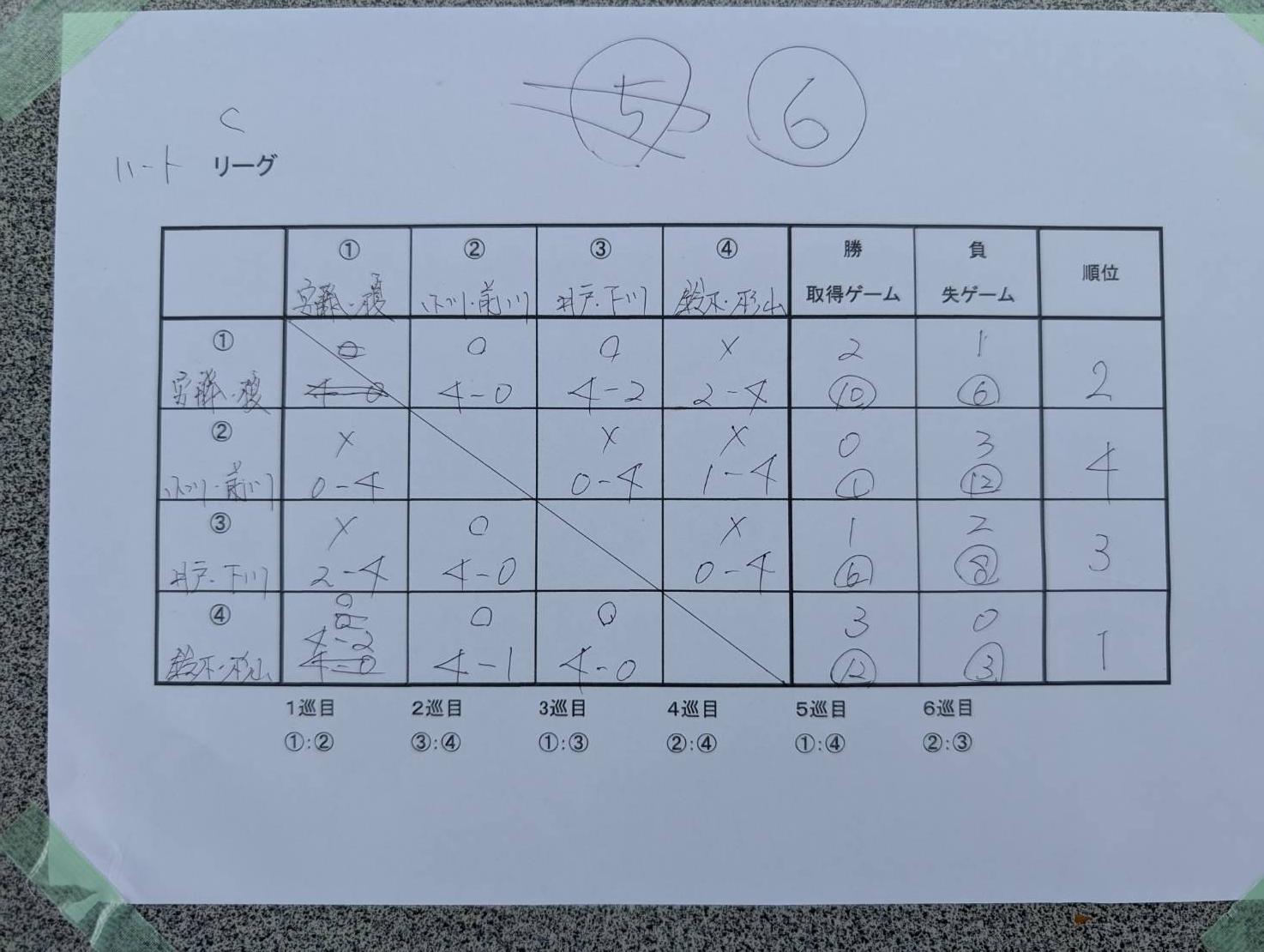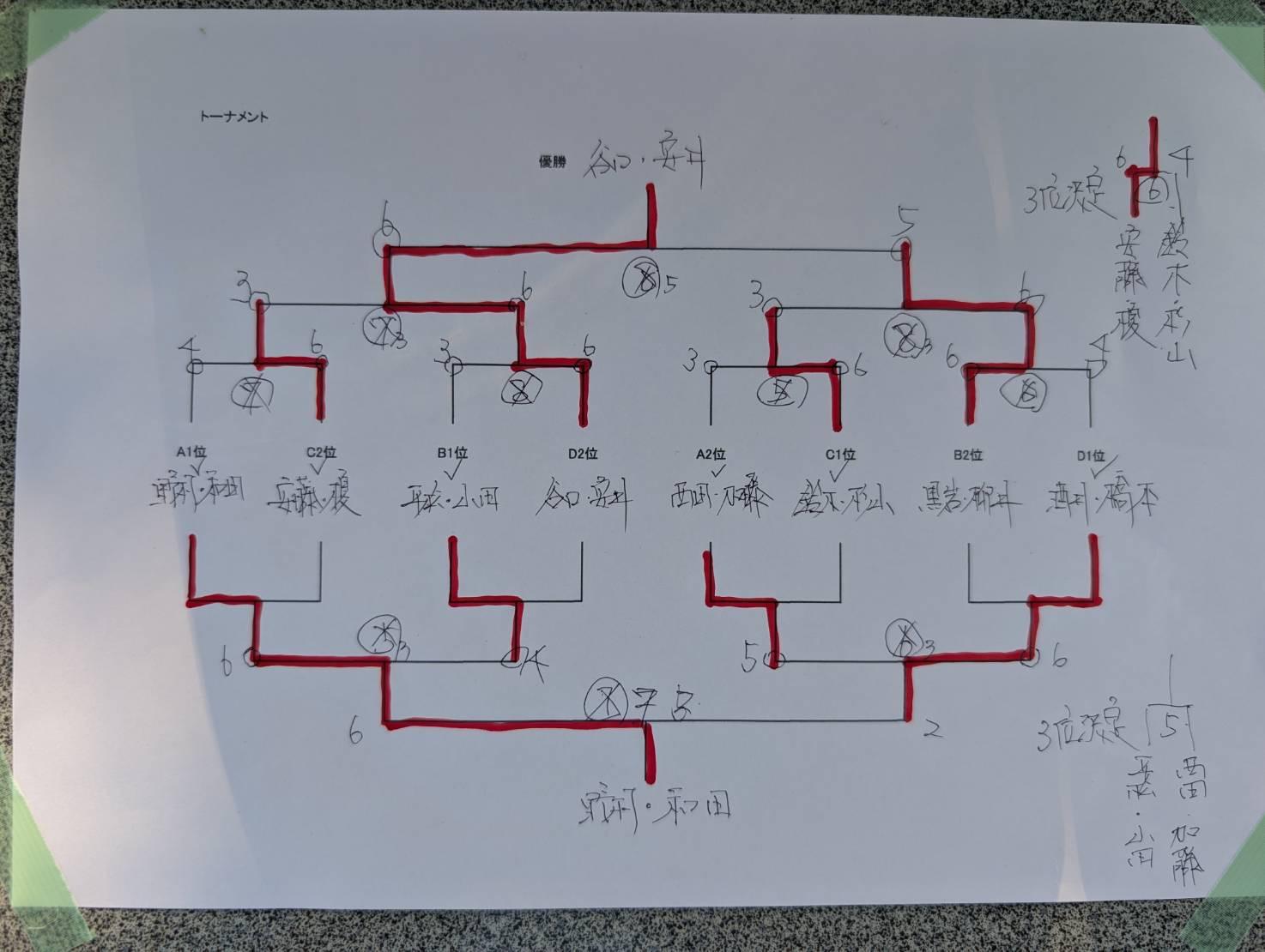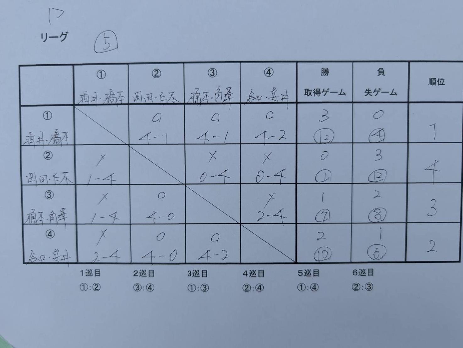 男子ダブルスと女子ダブルスは各一面で総当たり |