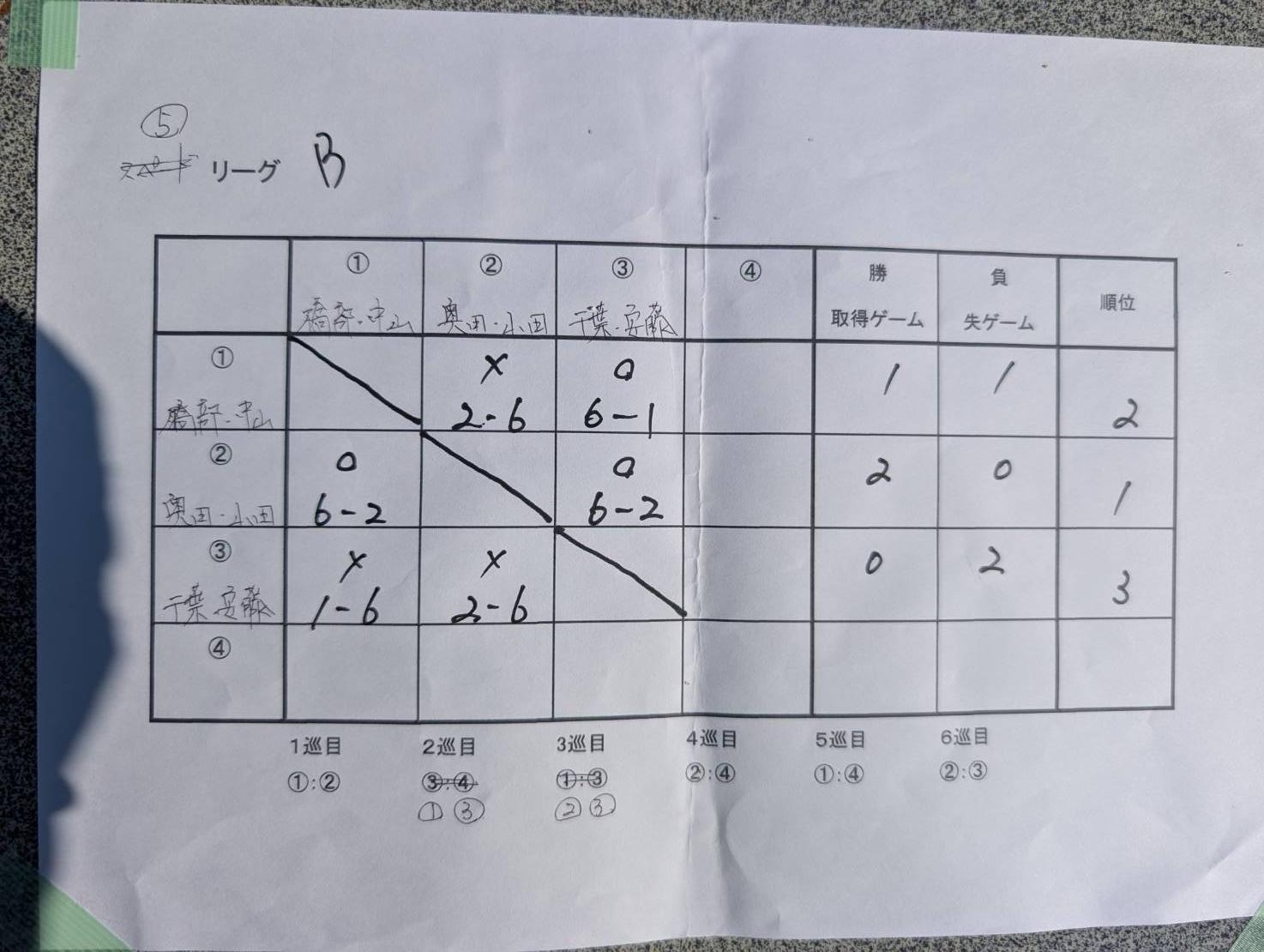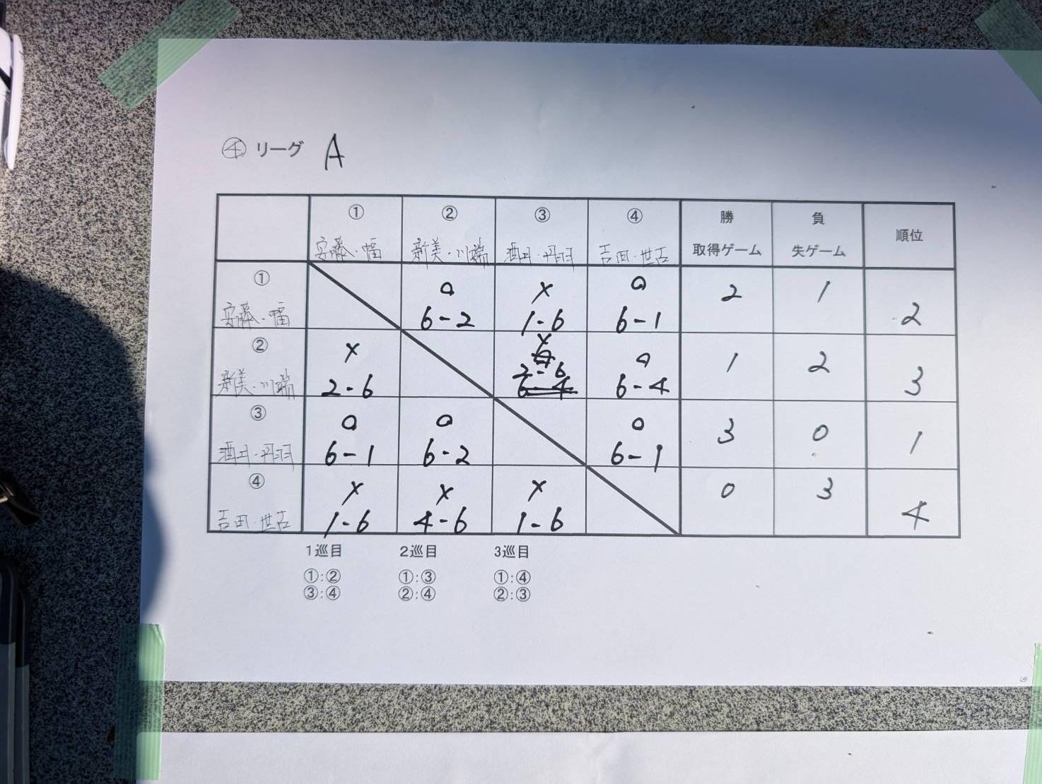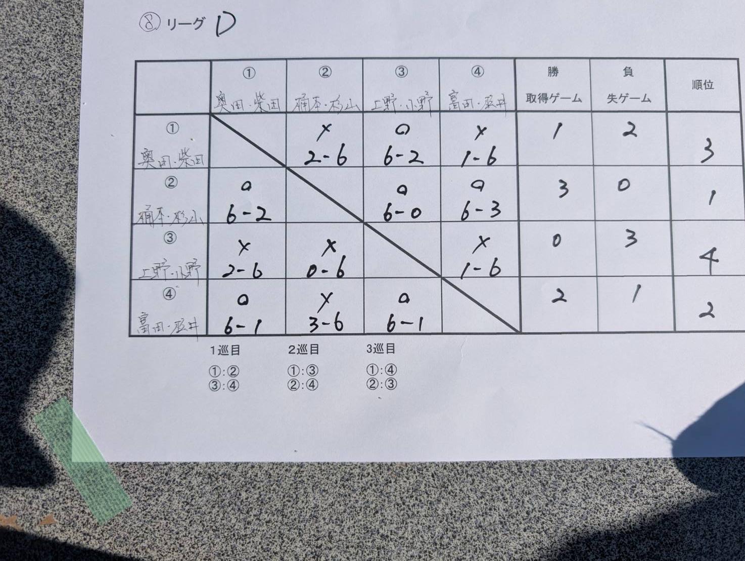 6ゲーム先取、ノーアド(同性同士対戦)