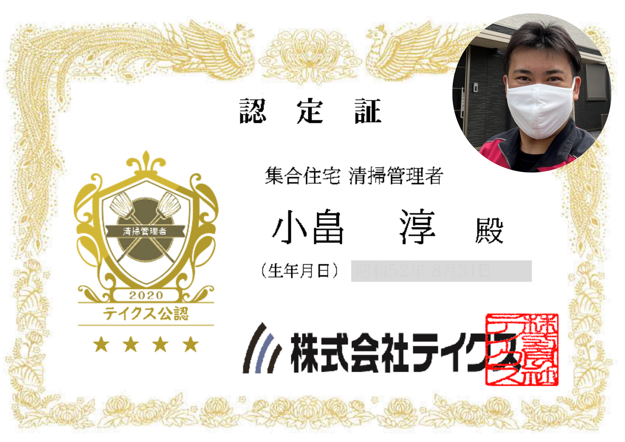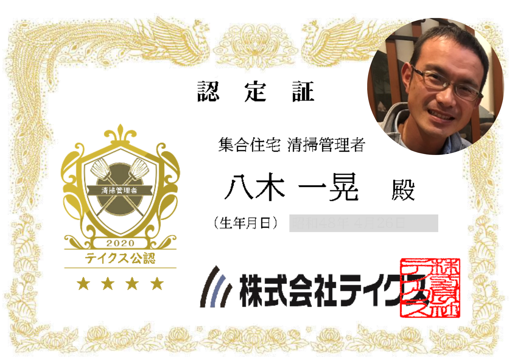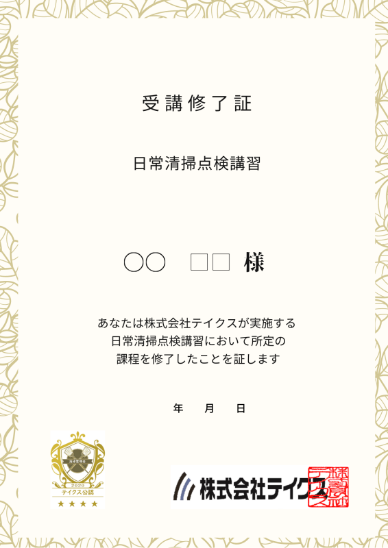 『日常清掃点検講習修了証』を発行させて頂きます。