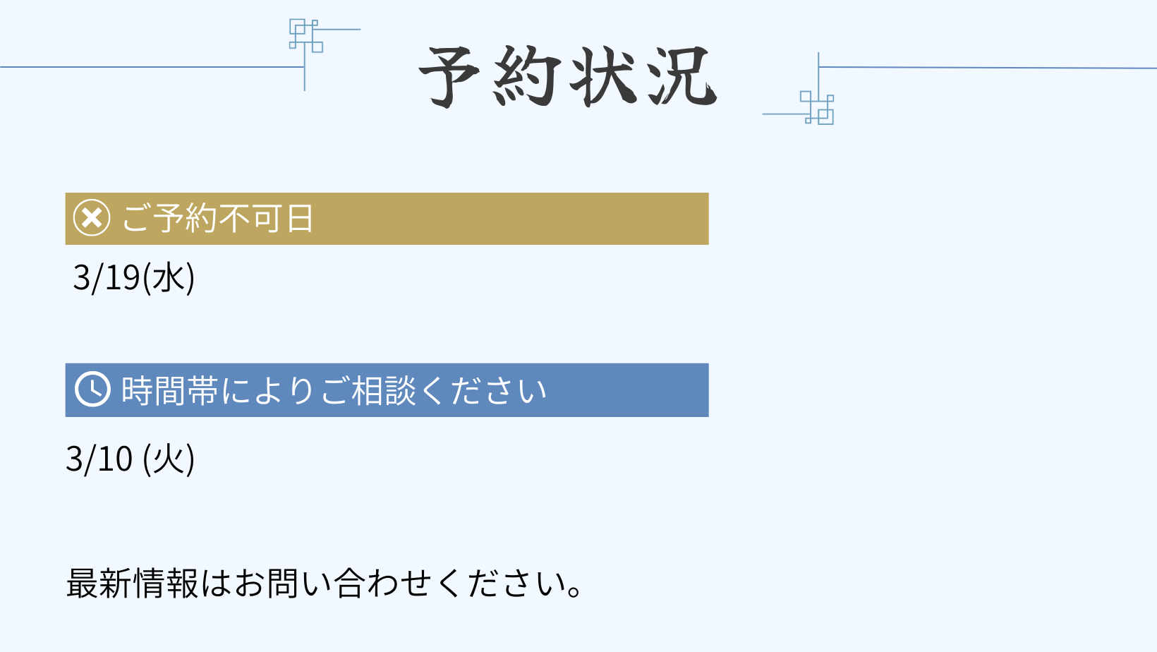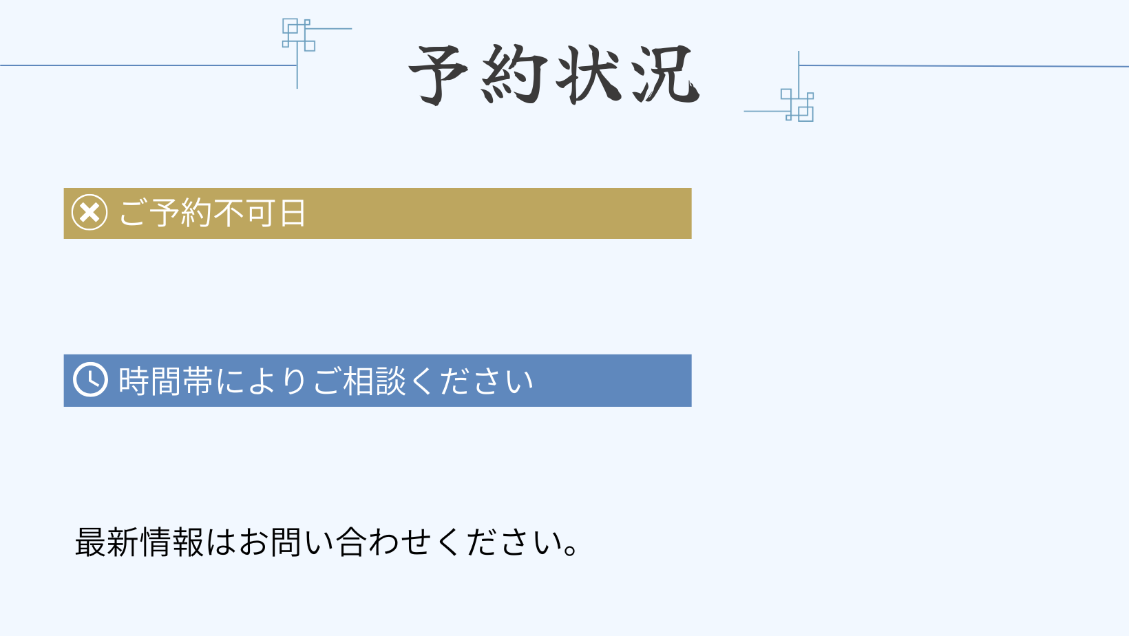 お打合せの内容を確認し、お客様からご連絡を頂き次第、予約確定となります。