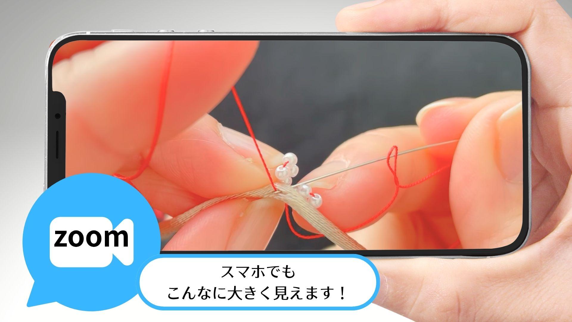 コードにビーズやパーツをひとつひとつ縫い付けることで
