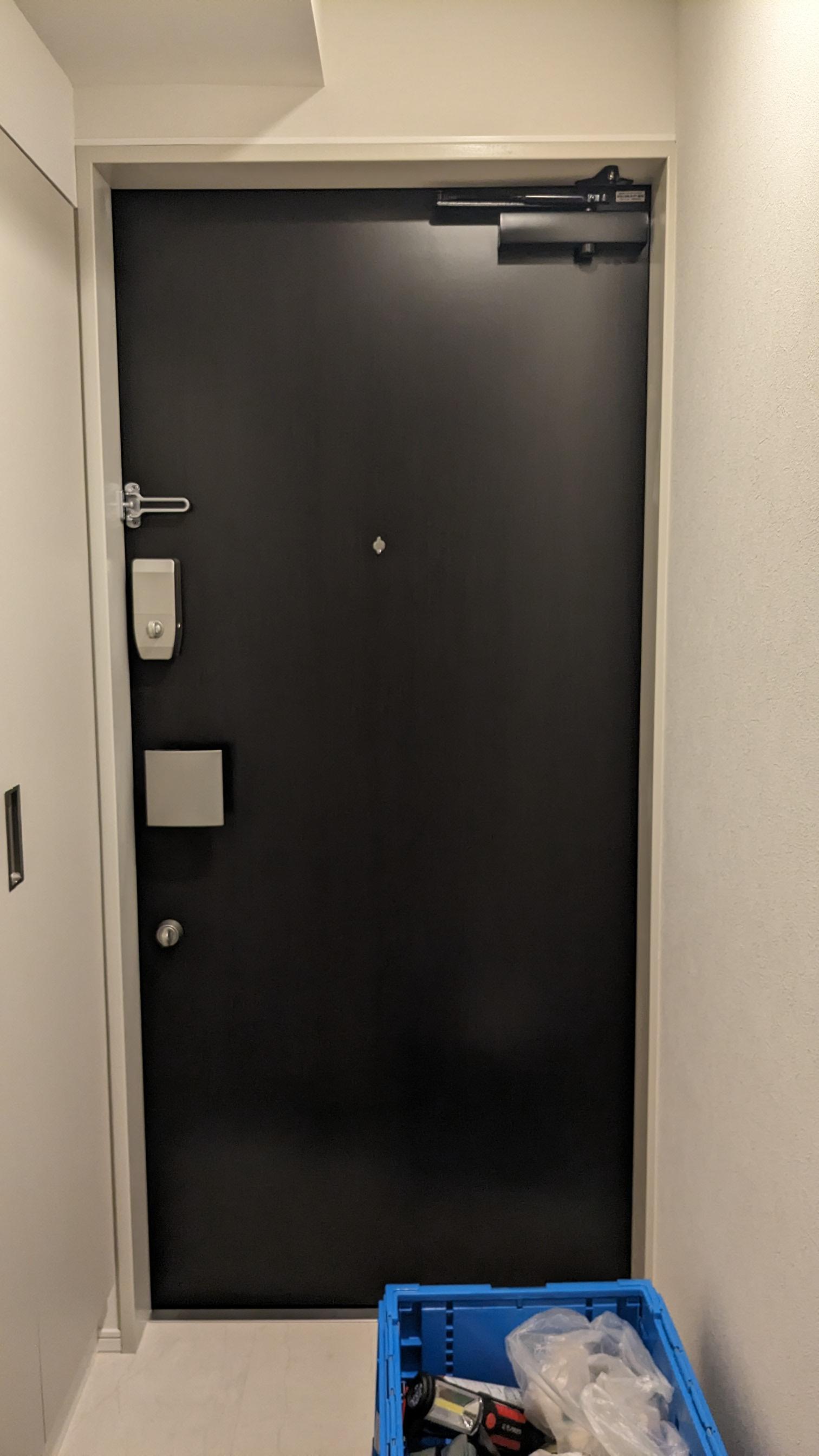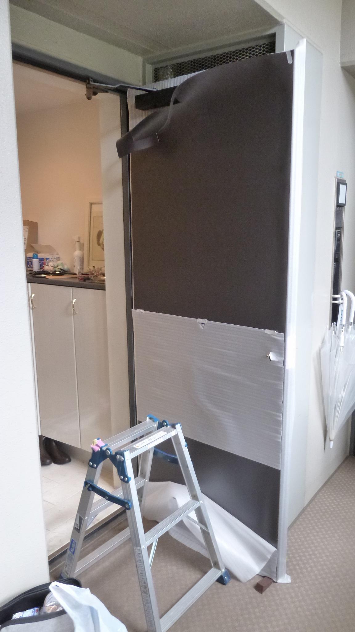黒っぽいドアなら見掛けもほとんど変わりません。この上に化粧シートや断熱シートを貼ることも可能です。原状復帰は容易で跡形は一切残りません。