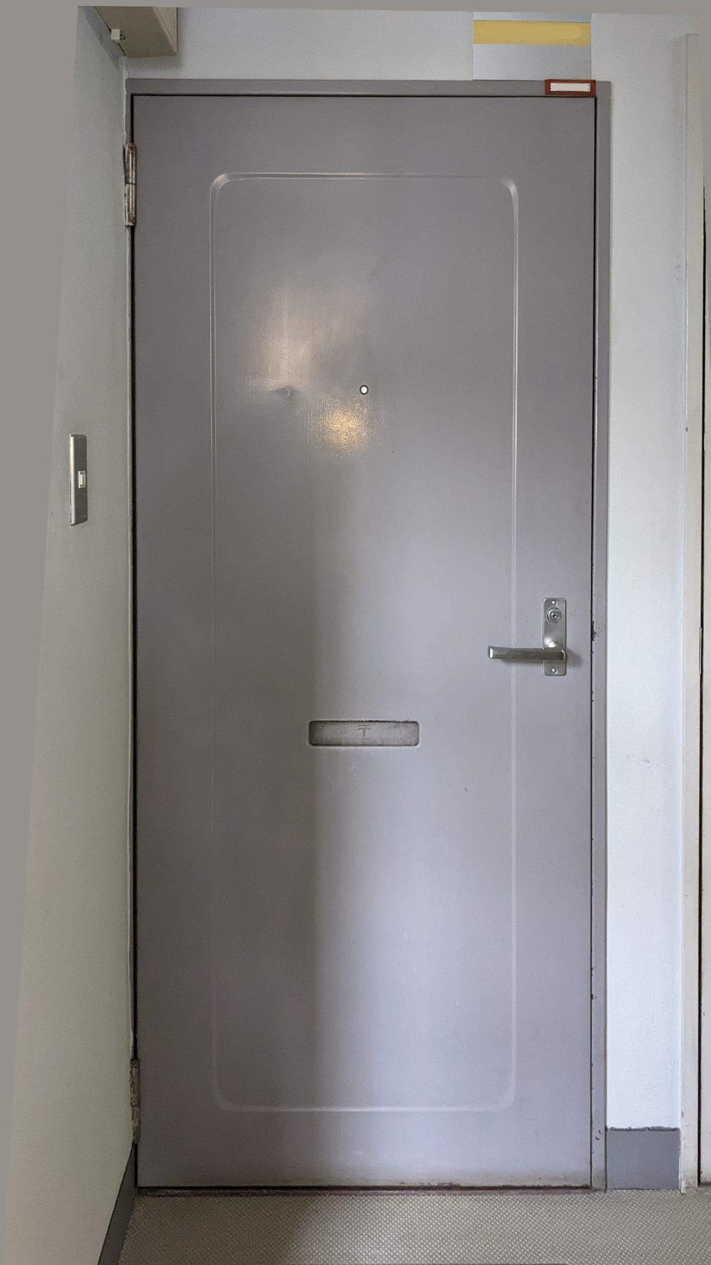 軽量スチールドアの場合は全面に制振シートとマグネットシートを貼り付けることにより音声帯域の遮音性が上がります。ドア枠の気密加工により高音域も遮音されるので、耳障りになる帯域はかなり軽減されます。
