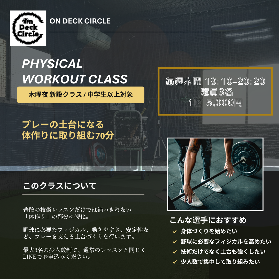 椅子 (4脚)、エアコン (2台)、トイレ(男女共用) 鏡 (1枚)、監視カメラ 音響・映像(AV機器) テレビ (1台)、モニター (1台) 【ジム備品】 エアロバイク(1台)、ヨガマット (2枚) バランスボール(3個)、ストレッチポール(3本) バーベル&ダンベル(最大120㎏) プライオボックス プライオボール(4個)、ポータブルマウンド パーソナルピッチャー(1台)、置きティー(2台) ボール各種(硬式、軟式など)、バトルロープ トレーニング用タイヤ(約100㎏) |