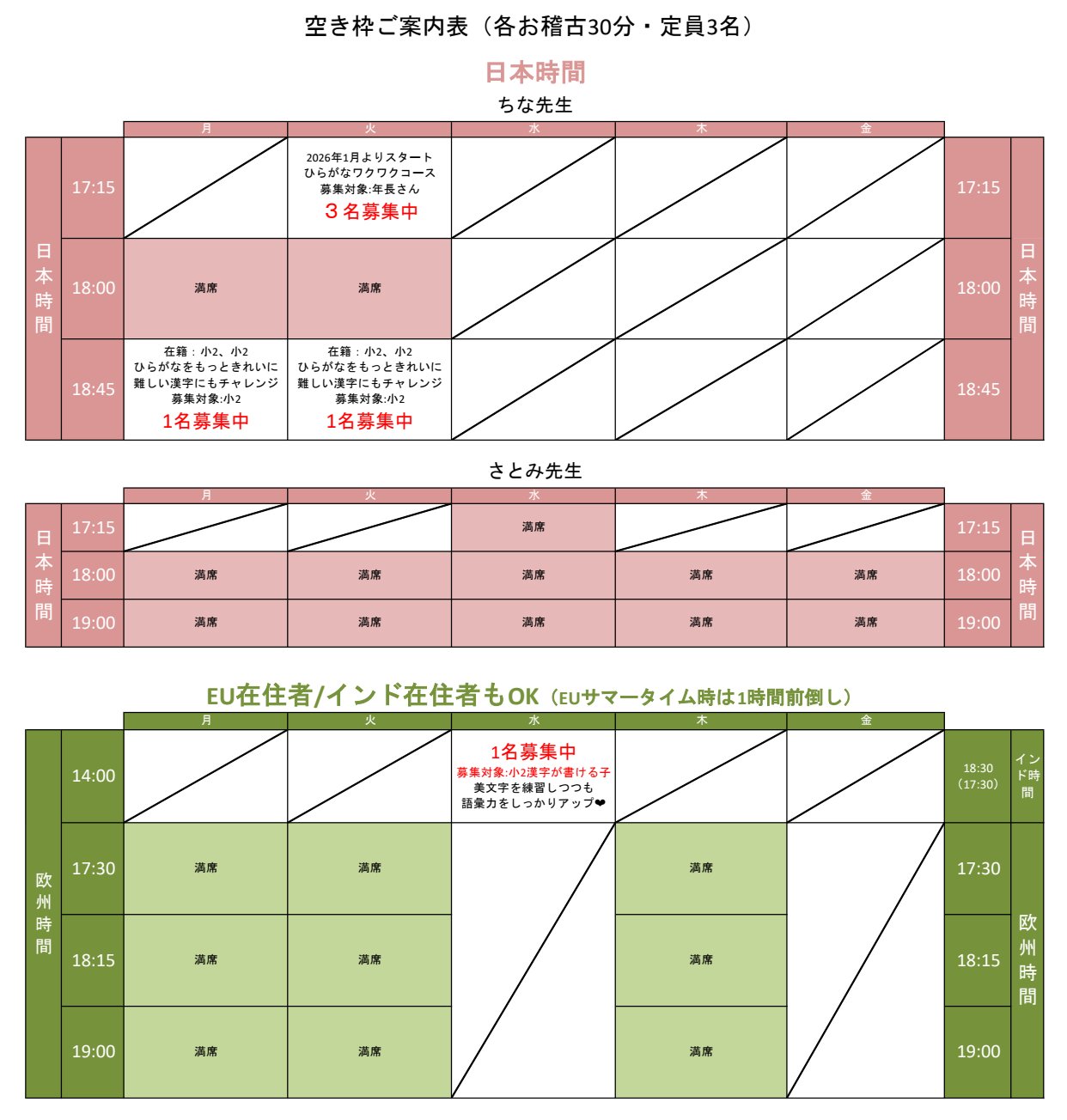 ※さとみ先生枠およびEU在住者は現在満席のため、