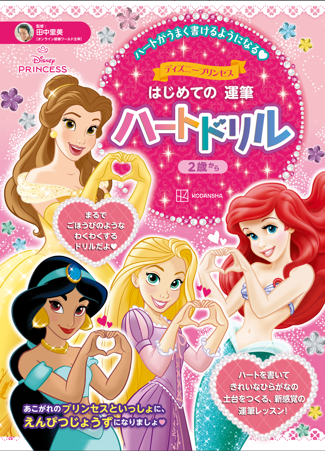 大好きなディズニープリンセスと一緒にハートを書いていくという今までになかったドリル。しかもそのハートは真ん中から2画で書きます。