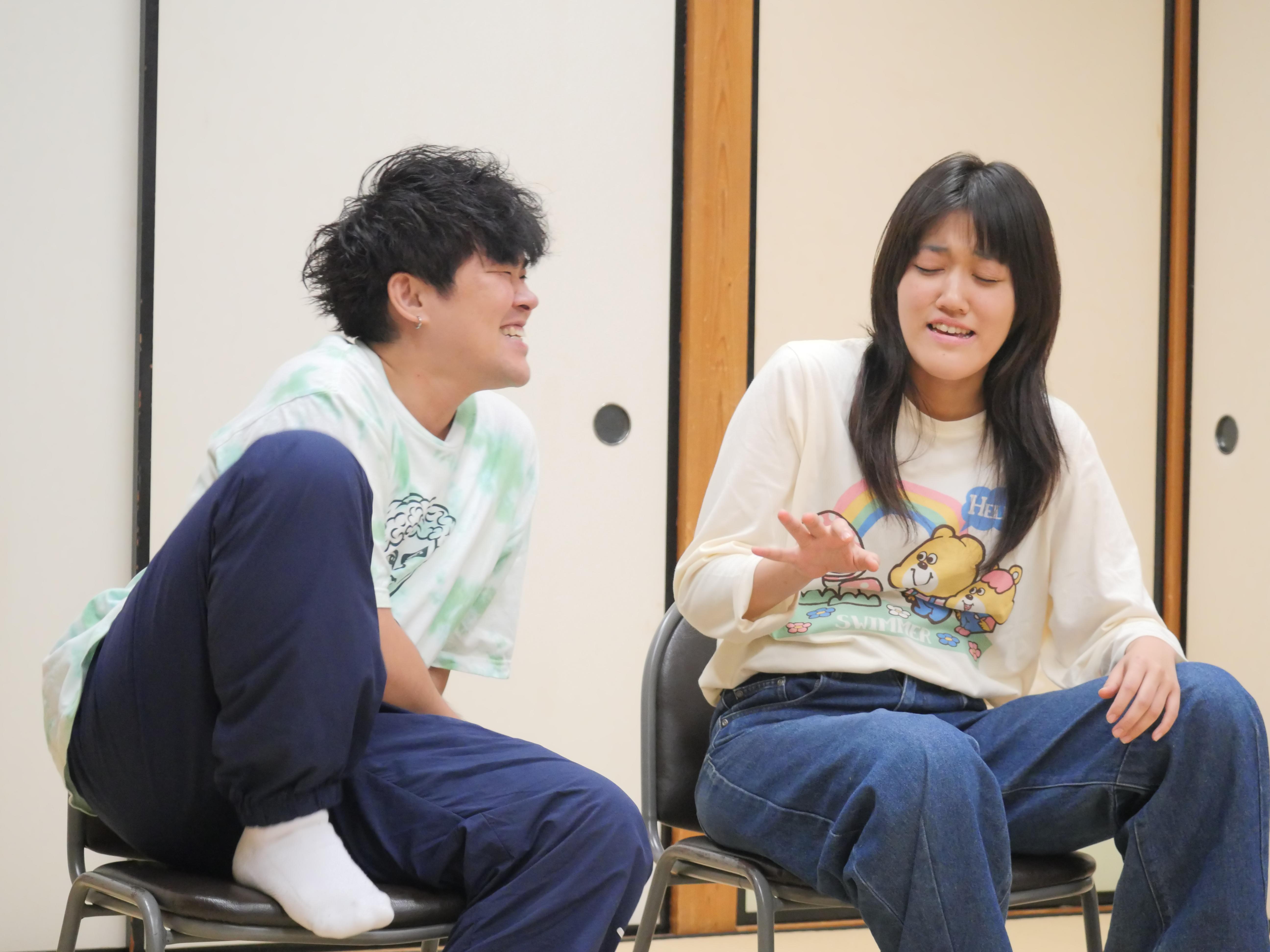 忍翔さんはいろんなメソッドを学んでいらっしゃるので、いろんな方向からお芝居のアプローチのやり方を教えてくださるのがとても魅力的でした。言葉で動けないなら、身体から挑戦してみよう、もっと言葉に頼ってみよう、と自分の中で意識しながらワークする事ができました。感情、身体、関係性、お客さんからの見え方、他のレッスンでは一つのことに着目して教えてもらっていたので、新鮮な気持ちで学ぶ事ができた気がしています。(俳優 斎藤朱海)