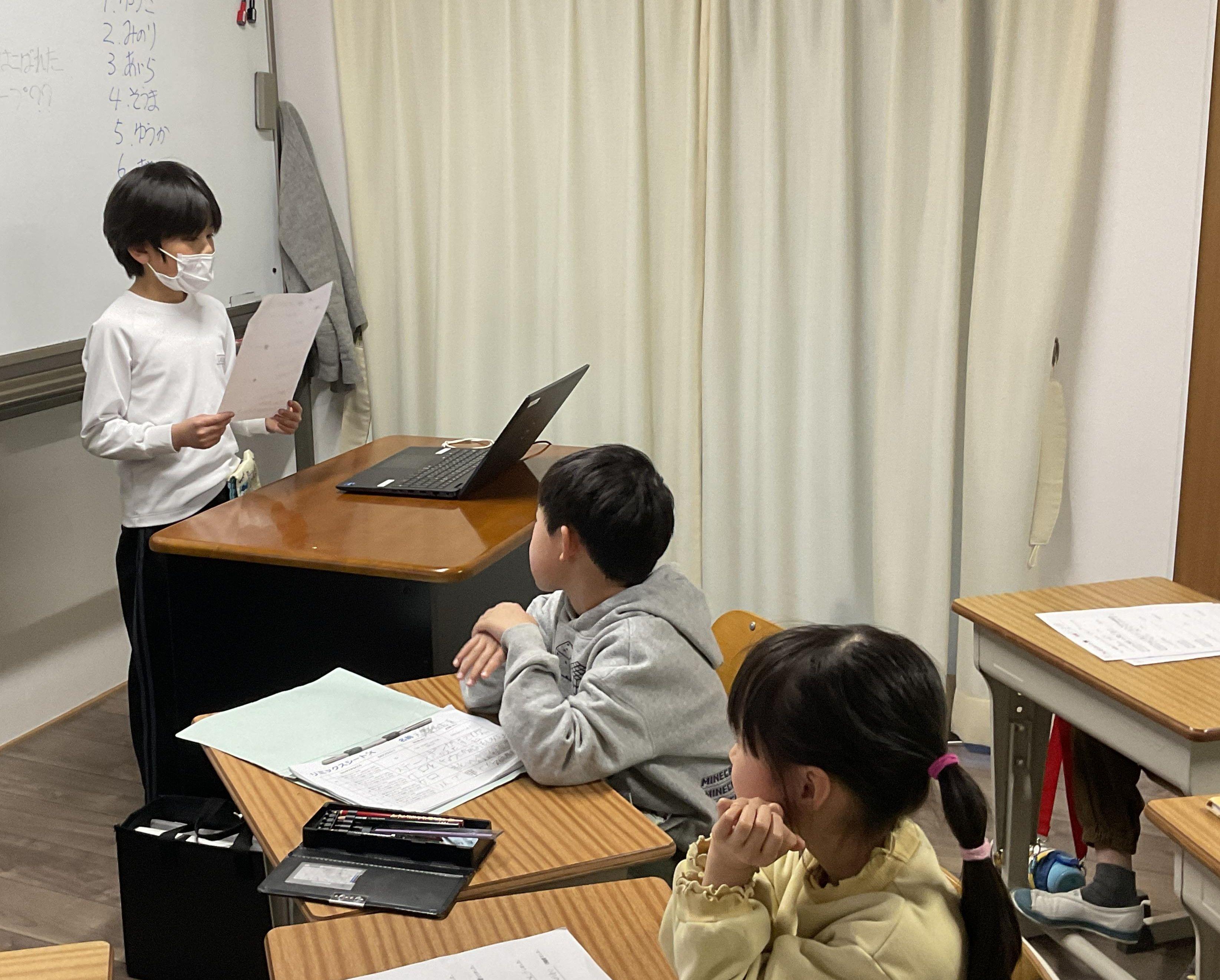 一人ひとり授業で達成したことや学んだこと、失敗したことなどを振り返り、発表する時間を設けています。自分の言葉にして発表することにより、その日に学んだことを定着させ表現を豊かにします。