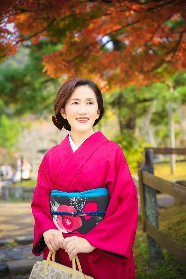 幼少期をニューヨークで過ごし、小学生の時に印象派モネの作品【ラ・ジャポネ―ズ】の女性が着ている和服姿にくぎ付けになったのがきっかけとなり、着物に興味をもちました。