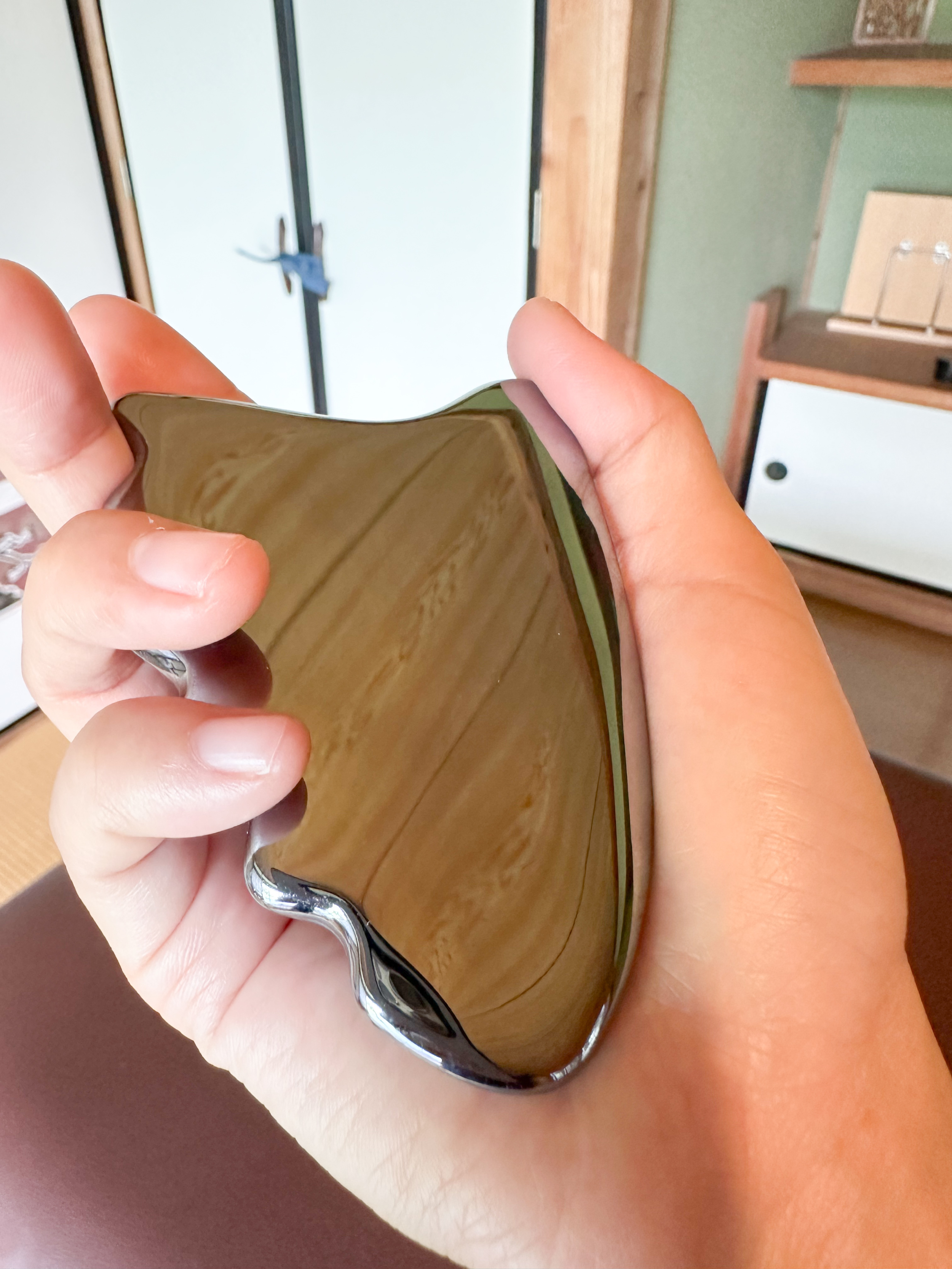 施術で使用しているカッサは、ケイ素が原料の「テラヘルツ」が、素材になっております。テラヘルツとは、人工的に作られた鉱石で、水晶を高温で溶かし、抽出した高純度のケイ素を再び結晶化させた物。遠赤外線の効果があることで知られていますが、内臓整体で扱っているカッサは、非常に品質が高い、原料ケイ素含有率 99.999999999 のイレブン9のテラヘルツ鉱石で作られています。