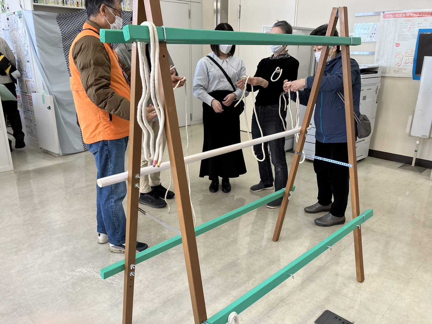 災ボラの④ロープワーク及び三角テント張り訓練の4項目でした。