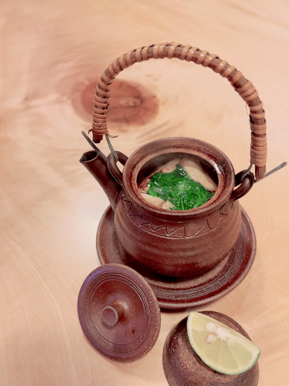 土瓶の中に香り高い素材にお出汁をはって蒸したお料理です。香りと季節感を楽しめます。土瓶蒸しの食べ方は、始めにお出し汁を味わうのが鉄則。松茸の芳醇な香りと味わいを熱々で楽しんで下さい♪