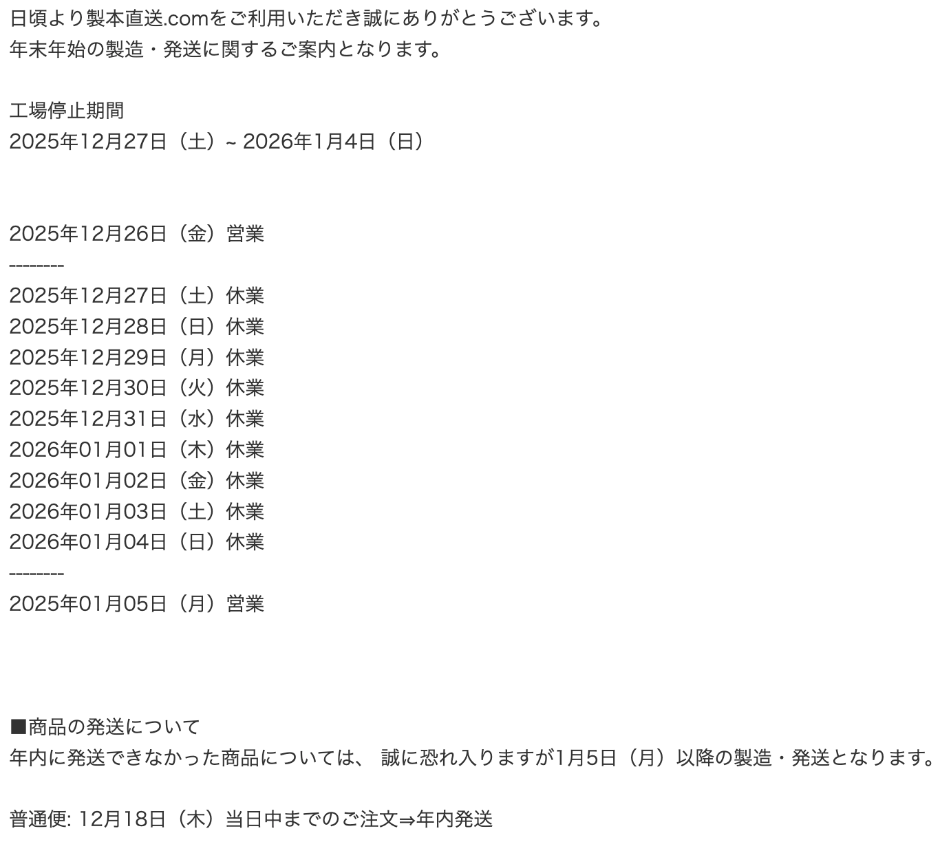 通常一週間程度でのお届けとなりますが、年末年始の廉価版お届けは休業明け以降順次対応して参ります。お届けが遅れますことをご注意ください。