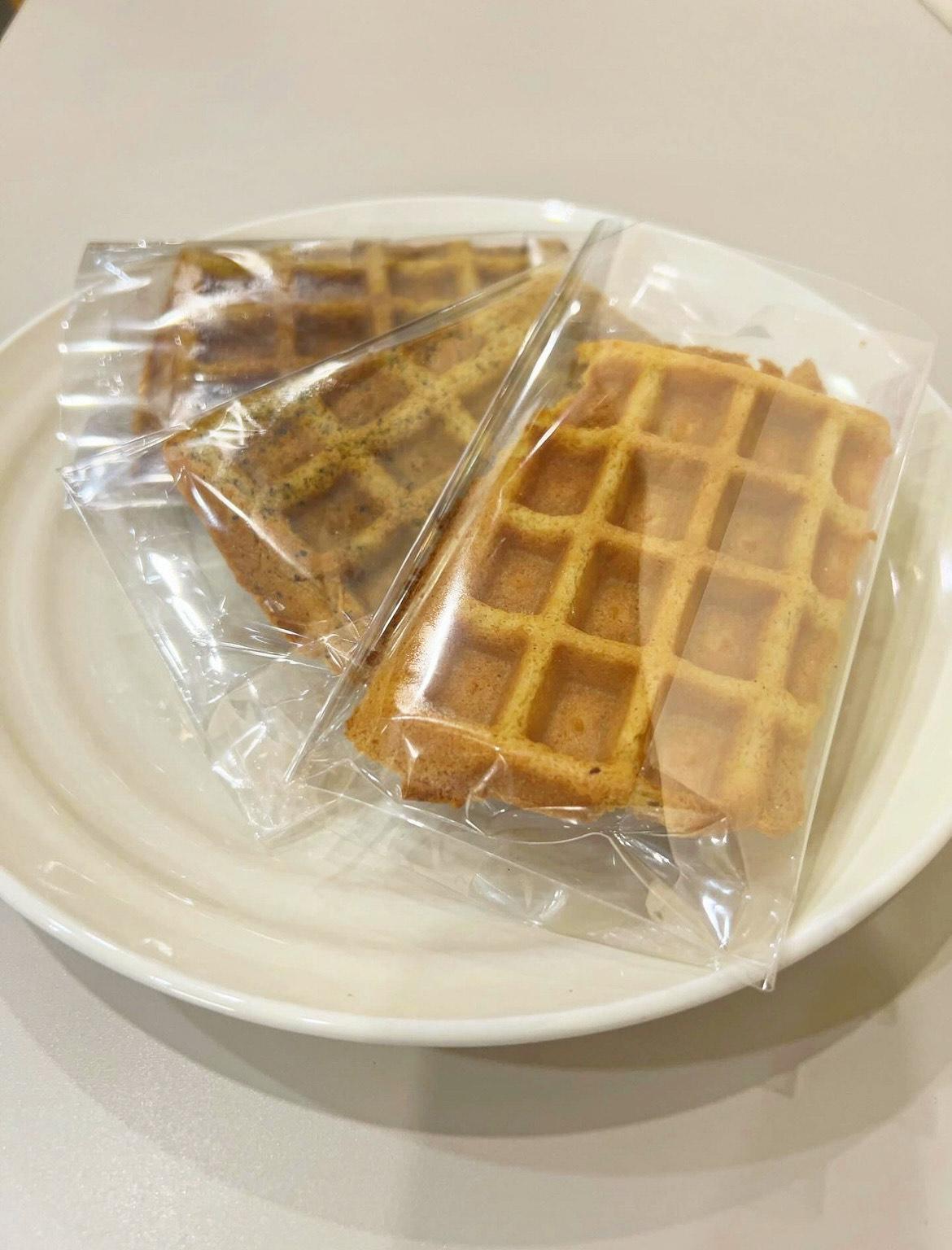 15秒ほど温めると、モッチモチのワッフルになります。サービス品の為、冷蔵ショーケース内のみとなります。