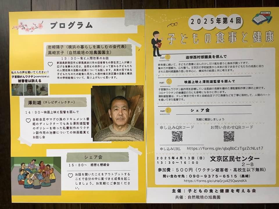 4/13文京区で上映会があります。 詳細はページ内の開催情報をご覧ください。 |