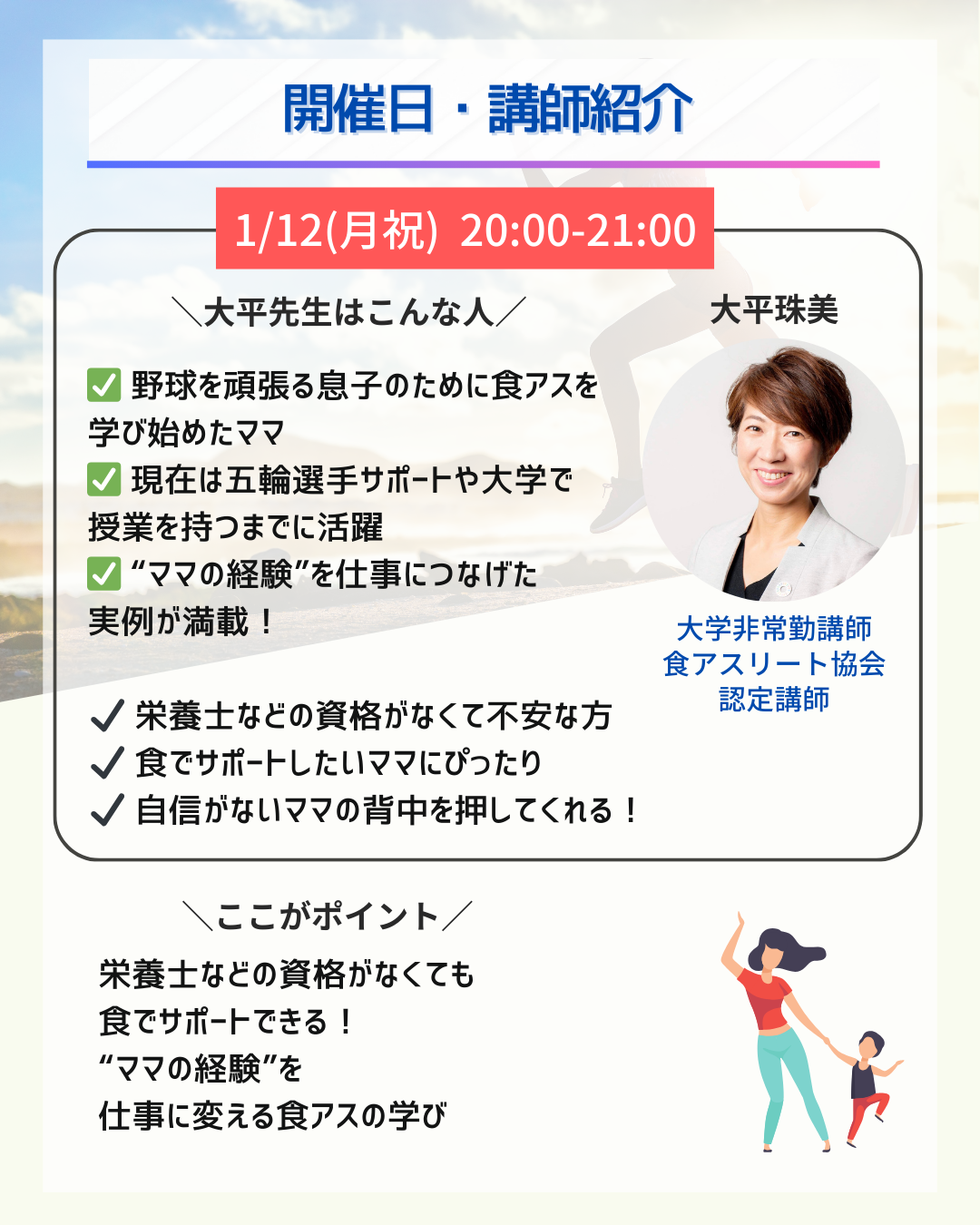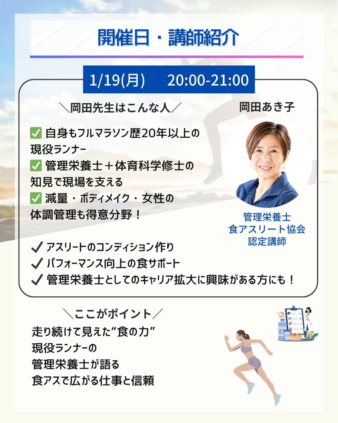 主任講師:馬淵 恵(公認スポーツ栄養士)