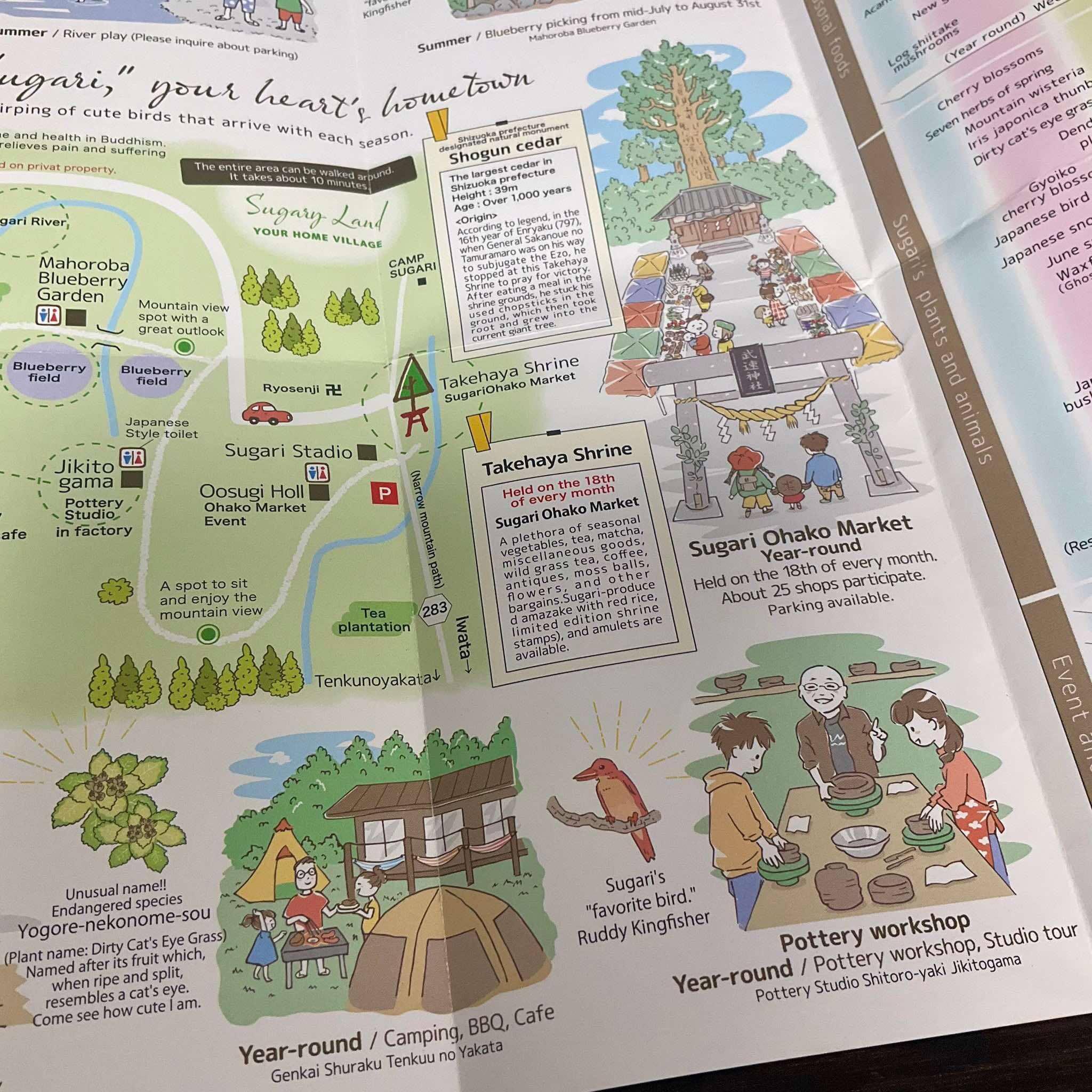 北遠の隠れ里「百古里(すがり)」を散策するのに必要なのがマップ。集落内の各所の情報をまとめてパンフレットにしました♪ 散策のお供にぜひ。