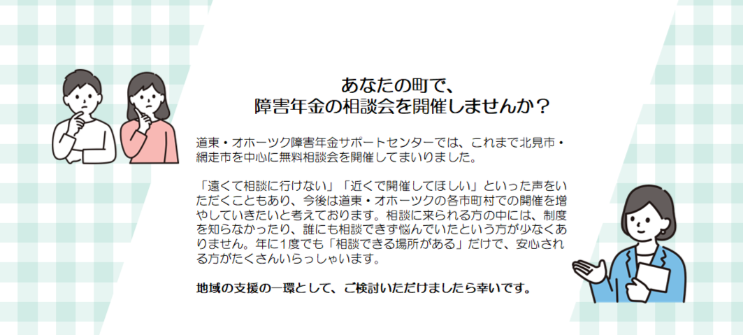 | 会社名 | 道東・オホーツク障害年金サポートセンター (運営:熊谷年金労務相談事務所) |