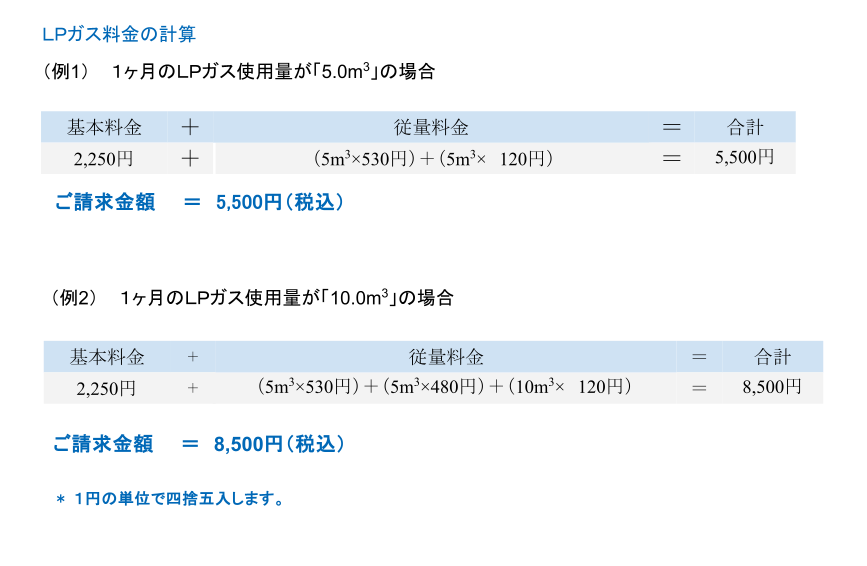 LPガスの使用量に応じてお支払いいただく料金です。 ガス原料費、配送費などを使用量に応じてご負担いただくものです。