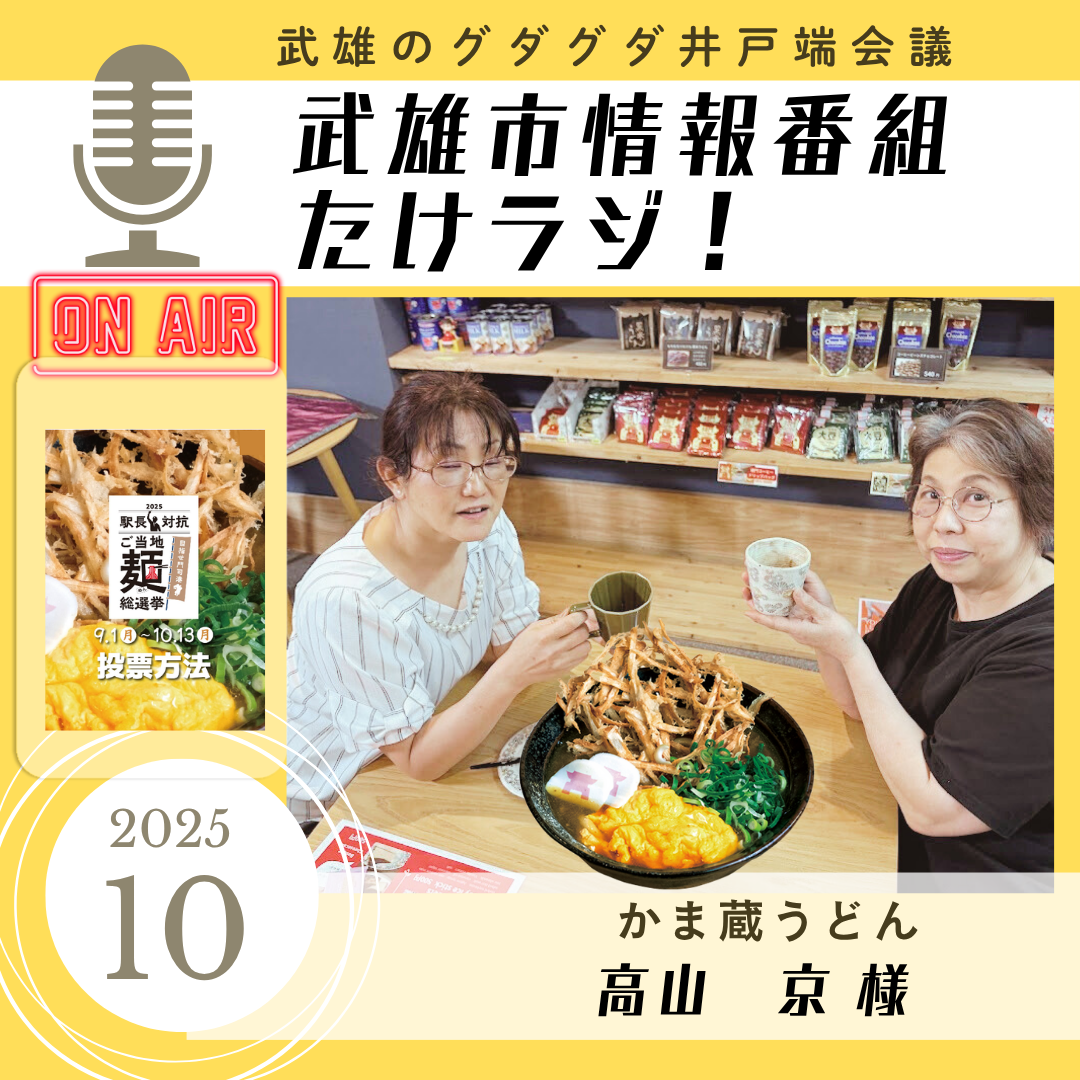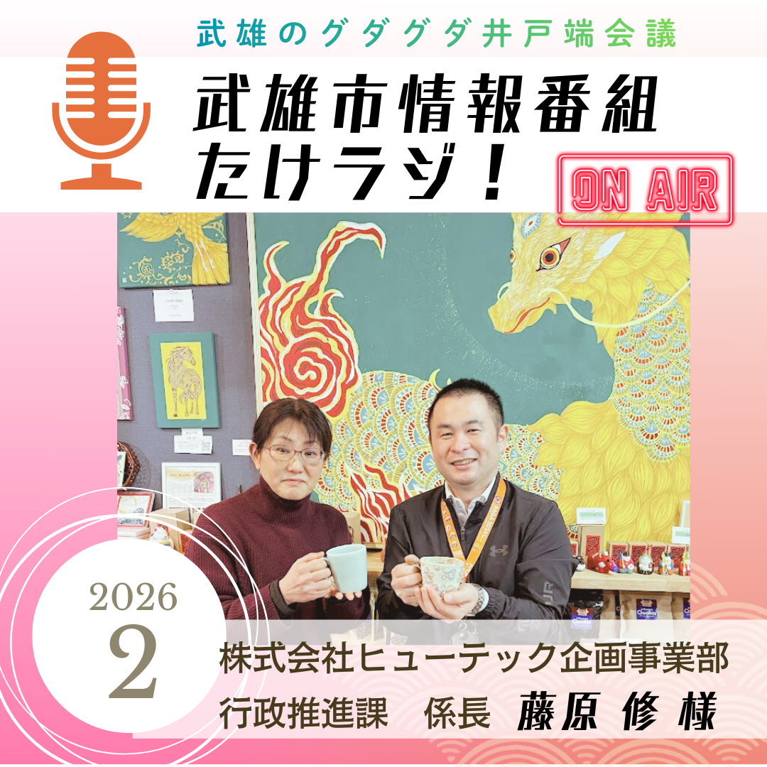 2021年11月からゆめのたね放送局福岡スタジオ開局初のローカルネットラジオとして、令和3年水害から復興していく武雄市の情報や、2022年秋の開業した西九州新幹線武雄温泉駅の話題、観光、人、歴史、食等を武雄のおばちゃんパーソナリティokkoと武雄市役所の大野さんとゲストを交えて放送。