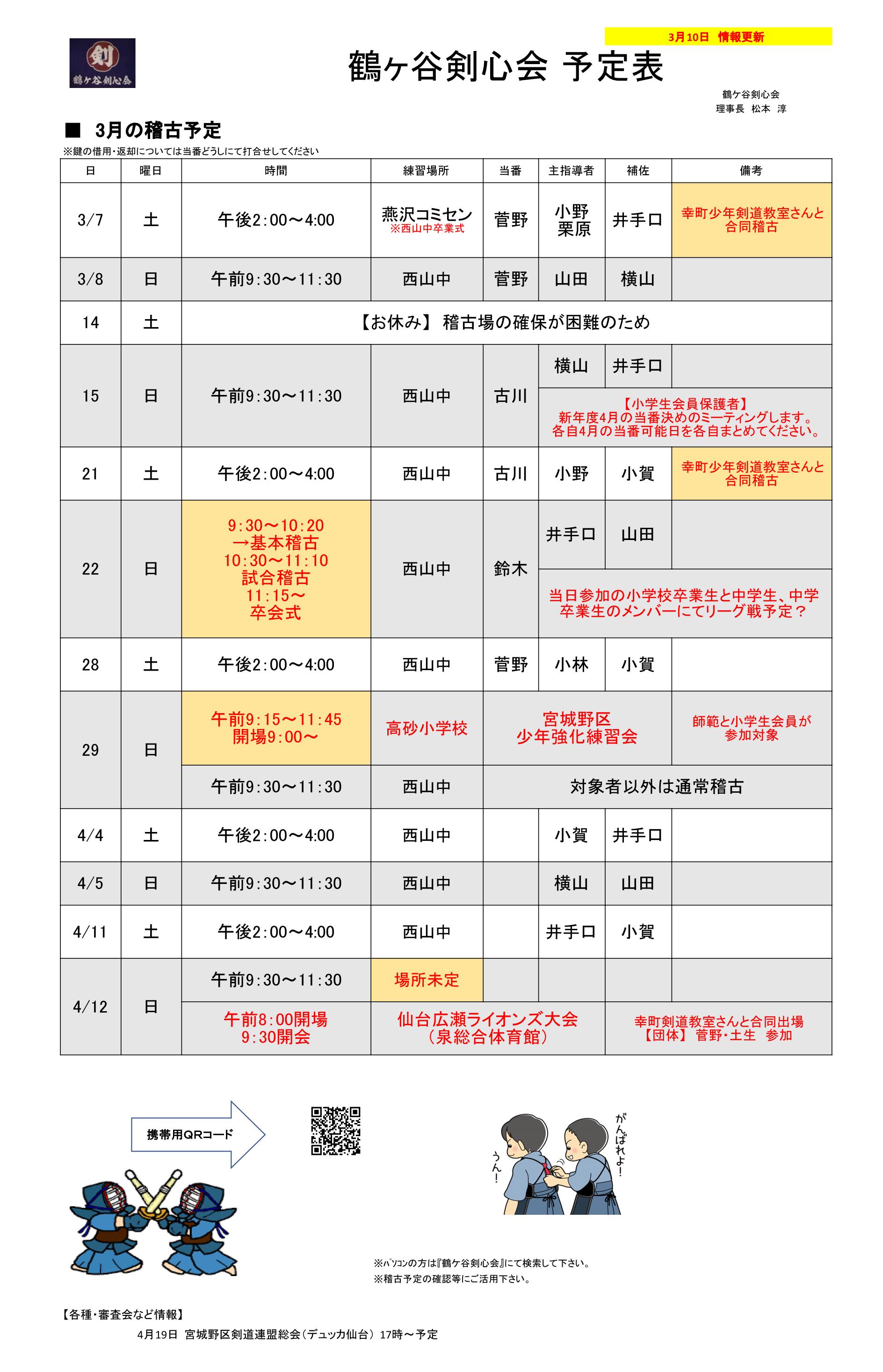 1.3月~4月の稽古予定表の内容を更新しました。