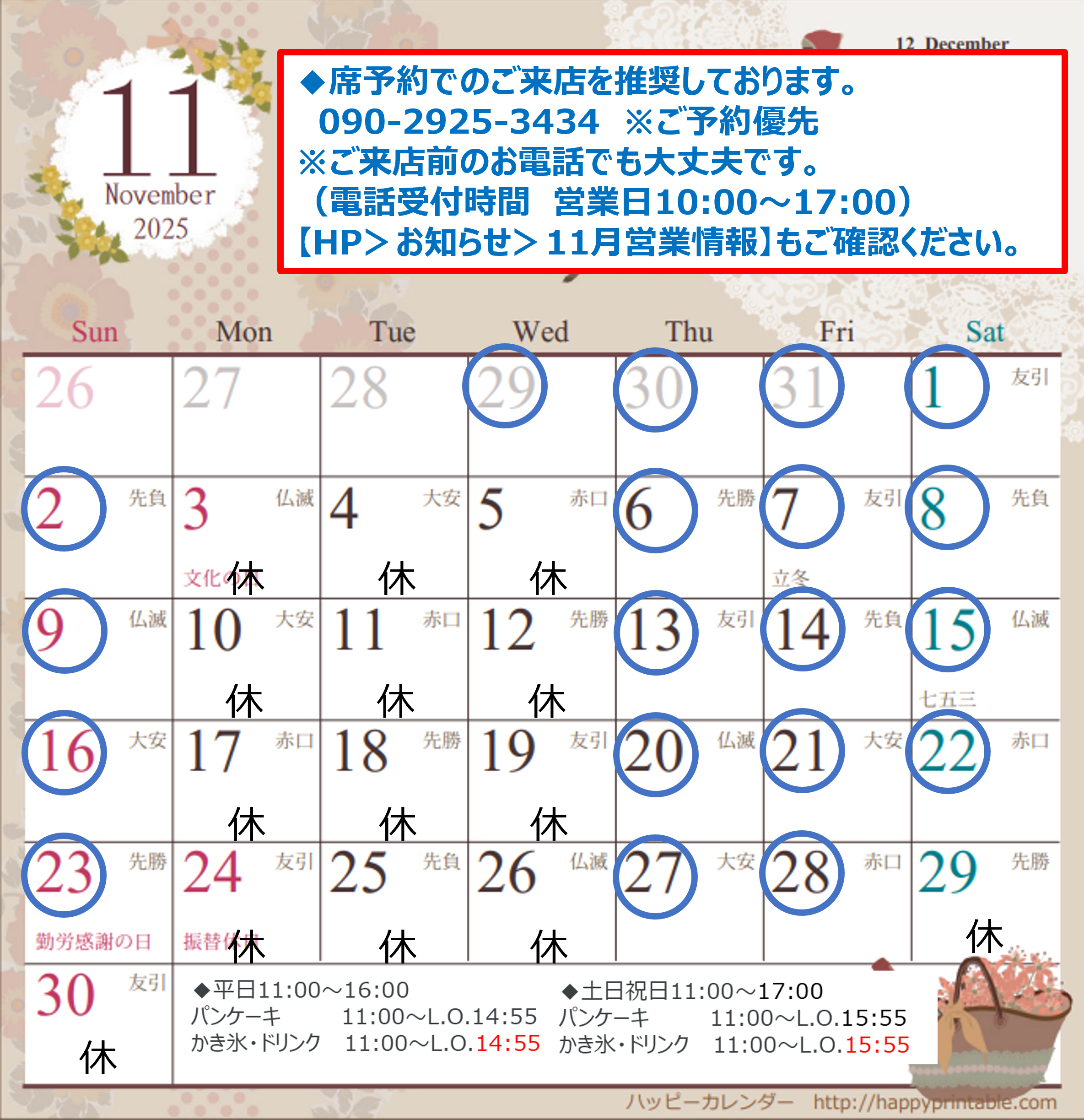 | 定休日: | 月・火・不定休 ※営業日カレンダーをご確認ください。 |