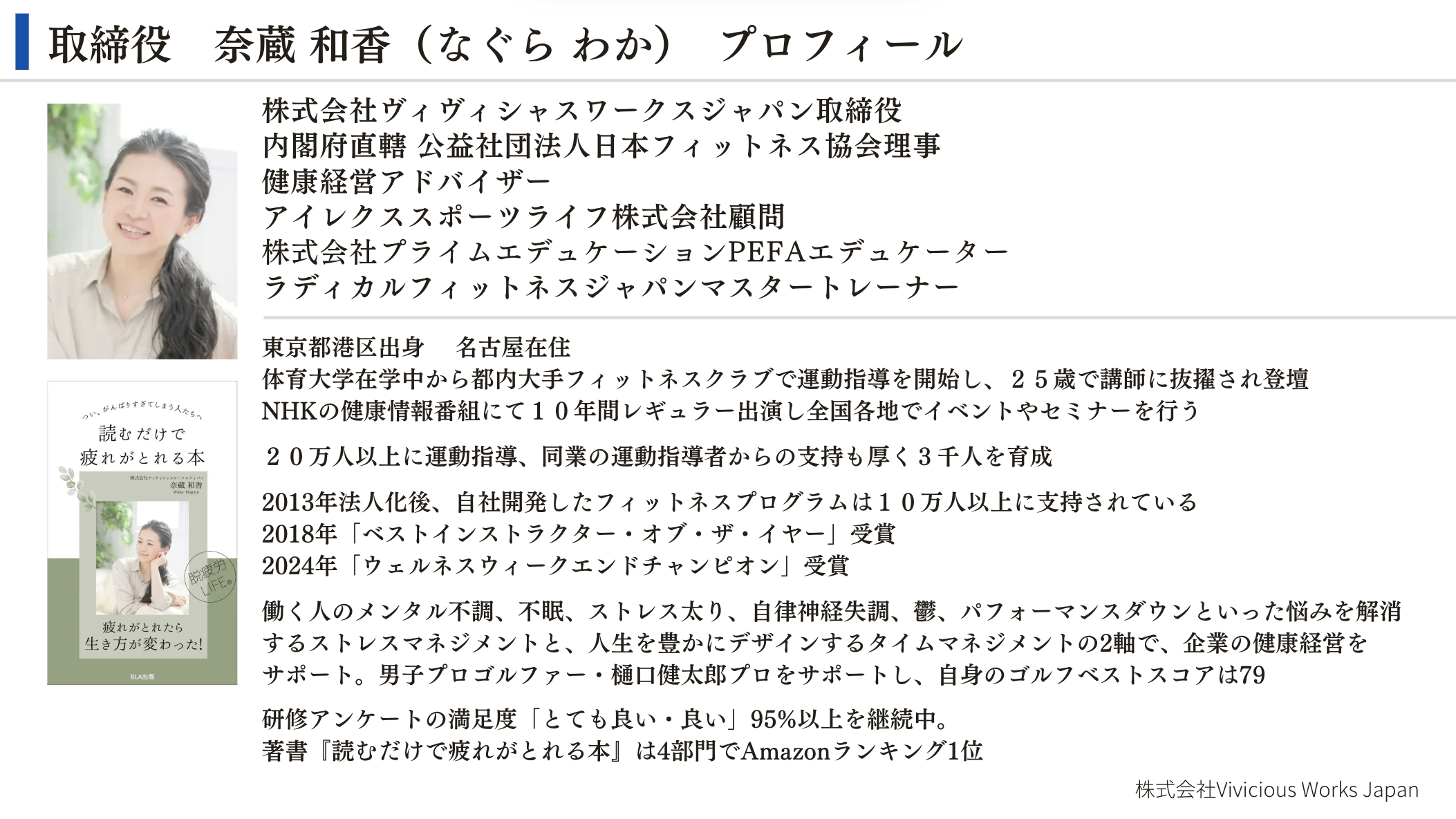 ヴィヴィシャスさんのセルフマネジメント研修に参加した部下が、より意欲的に仕事に取り組むようになり、実際に体調面も安定するようになった様子で笑顔になる機会が増えた。コミュニケーション量も増え、世代間の連携も円滑になり職場の雰囲気も明るくなった。