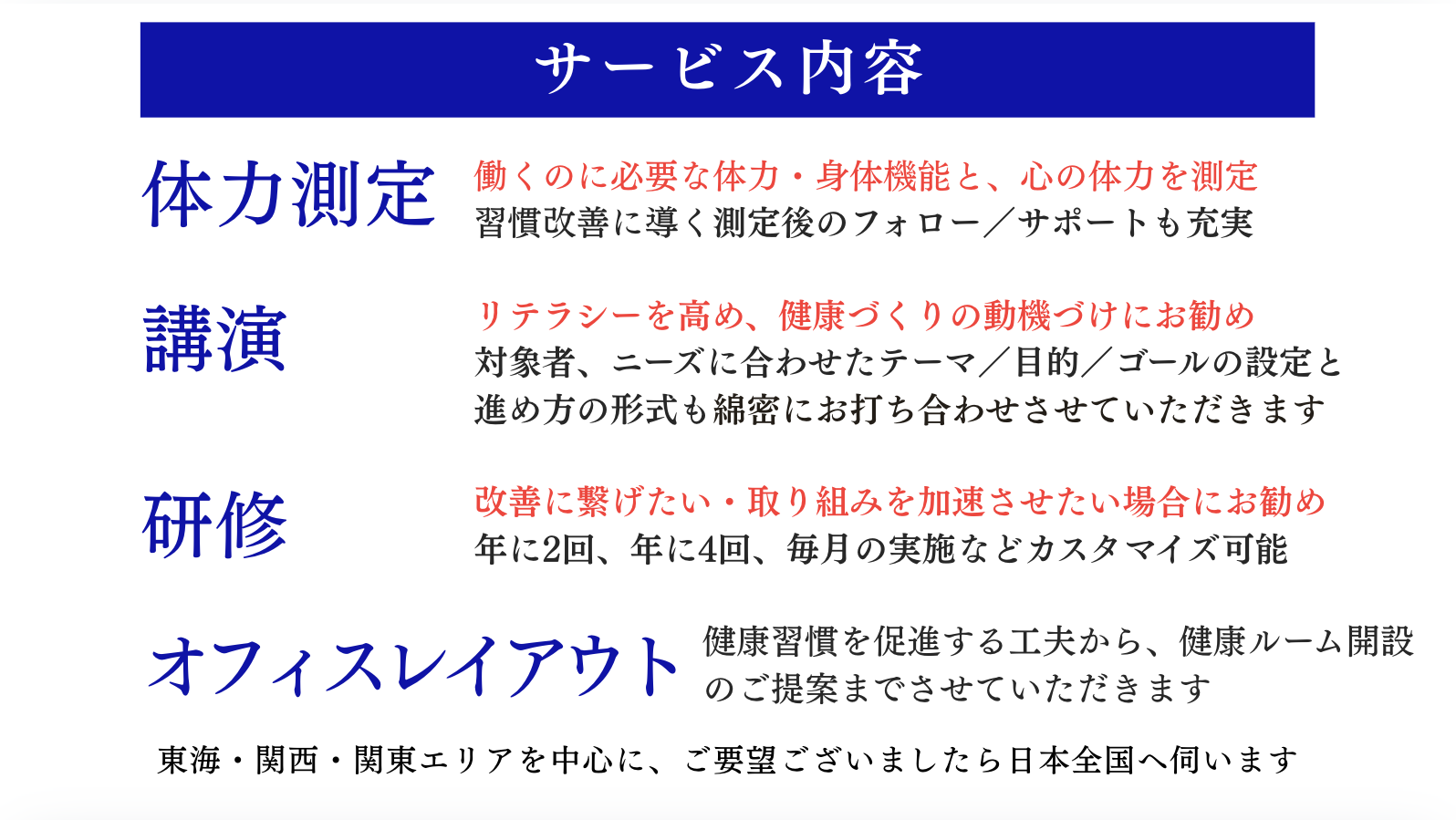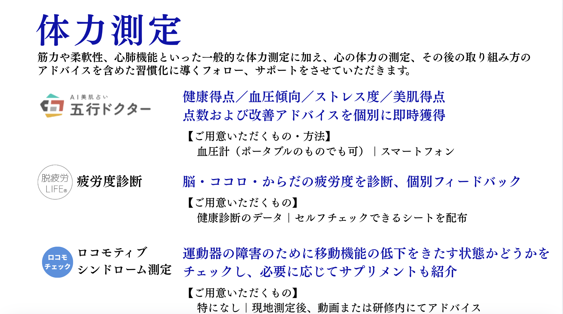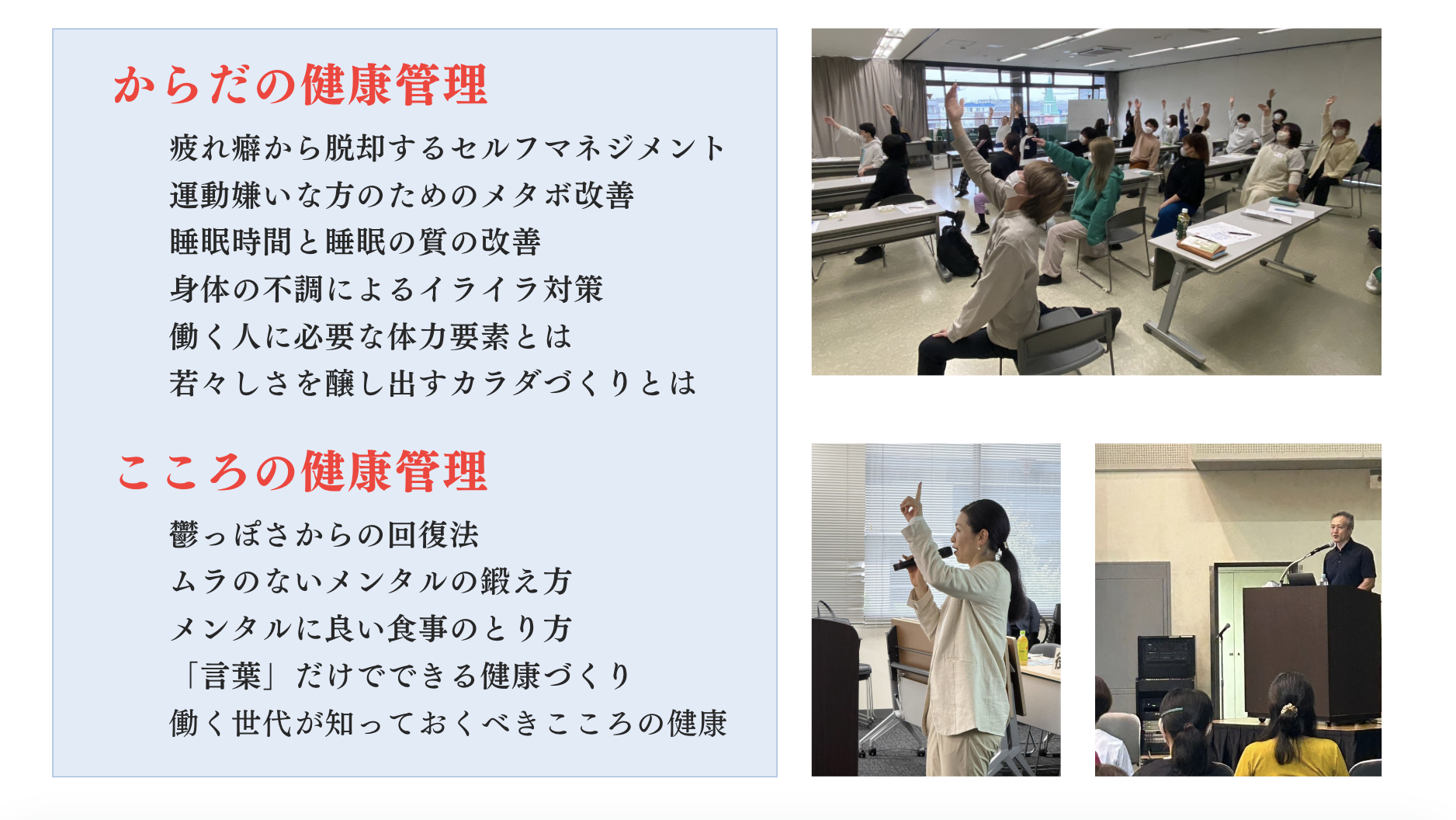 職業柄、肉体疲労が高めなのは当たり前なのですが、肉体疲労のリカバリー法だけでは不十分であることを教えてもらったことが目から鱗でした。ちょっとした意識と生活の中での工夫によって疲労を軽減できるようになり、職場のメンバーも巻き込んだところ喜ばれた。共通言語で今も継続できていることが有り難い。
