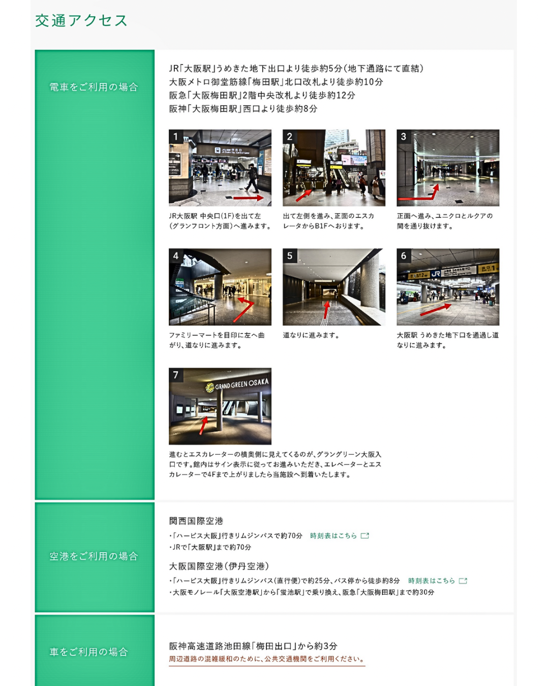 | アクセス | ・JR「大阪駅」うめきた地下口より徒歩7分(地下通路にて直結) ・大阪メトロ御堂筋線「梅田駅」北改札より徒歩12分 ・阪急「大阪梅田駅」2階中央改札口より徒歩12分 |