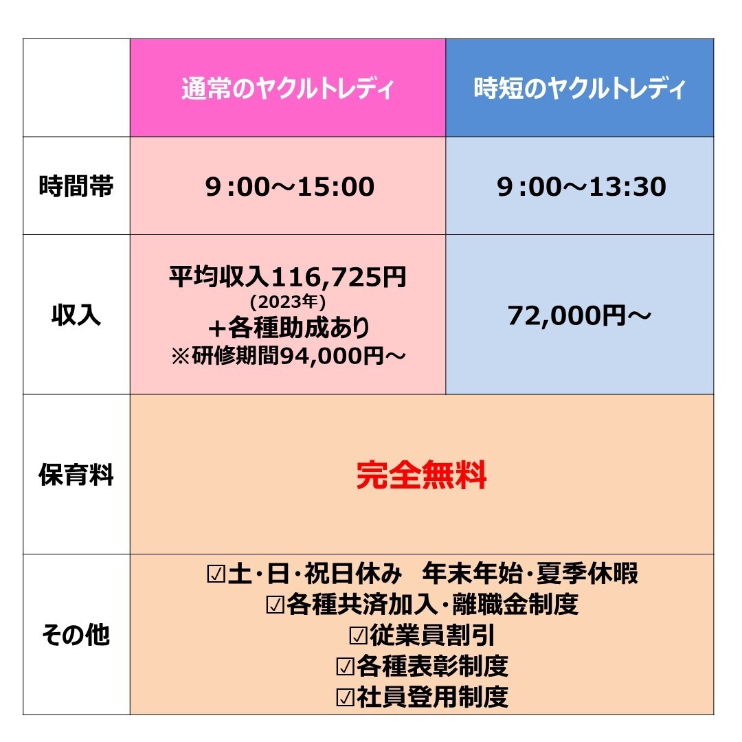 ヤクルトレディとして働くうえでの悩みや疑問を解消するために、お気軽にお問い合わせください。実際に働く場所や保育所もご覧いただけます!